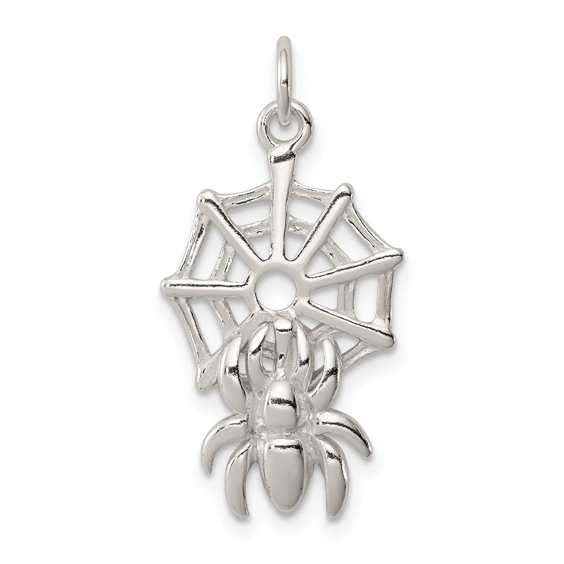 Add a touch of intrigue and sophistication to your jewelry collection with this stunning Sterling Silver Spider on Web Charm Pendant. Crafted from high-quality sterling silver, this pendant features a detailed spider resting on its delicate web. The average weight of this pendant is 0.99 grams, making it lightweight and comfortable to wear all day long. The width of the pendant is 14mm, making it the perfect size to wear alone or layer with other necklaces for a more dramatic look. Whether you're a fan of spiders or simply appreciate unique and eye-catching jewelry, this Sterling Silver Spider on Web Charm Pendant is sure to become a favorite piece in your collection. Add this pendant to a chain of your choice and get ready to turn heads wherever you go.