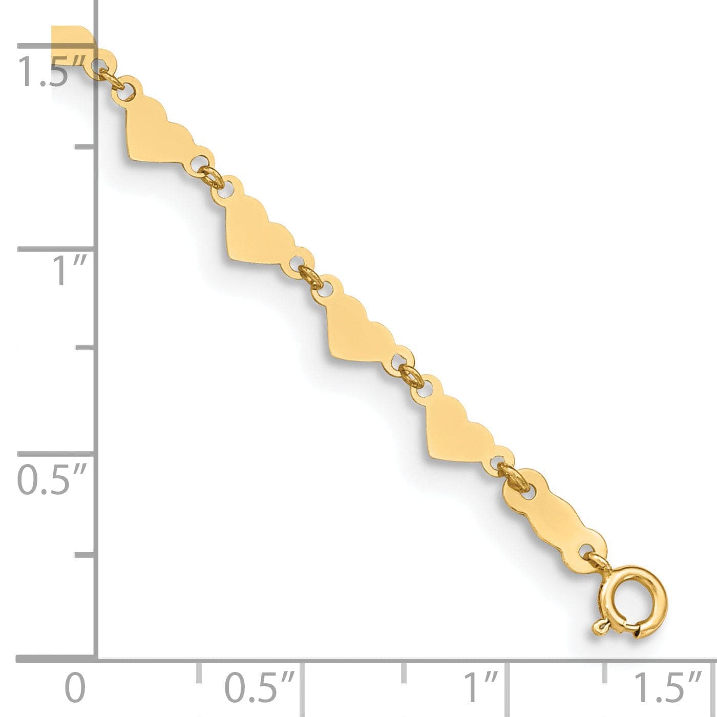 Add a touch of elegance to your ankle with our stunning 14k Yellow Gold Oval Link Chain With Hearts Anklet. Crafted from high-quality 14k yellow gold, this anklet features a delicate oval link chain adorned with small heart-shaped charms, creating a sweet and sophisticated look. The anklet is adjustable in length, making it the perfect fit for any ankle size. Whether you're dressing up for a special occasion or simply adding a touch of glamour to your everyday look, this anklet is sure to turn heads. Elevate your style with this beautiful piece of jewelry that will surely become a staple in your collection.
