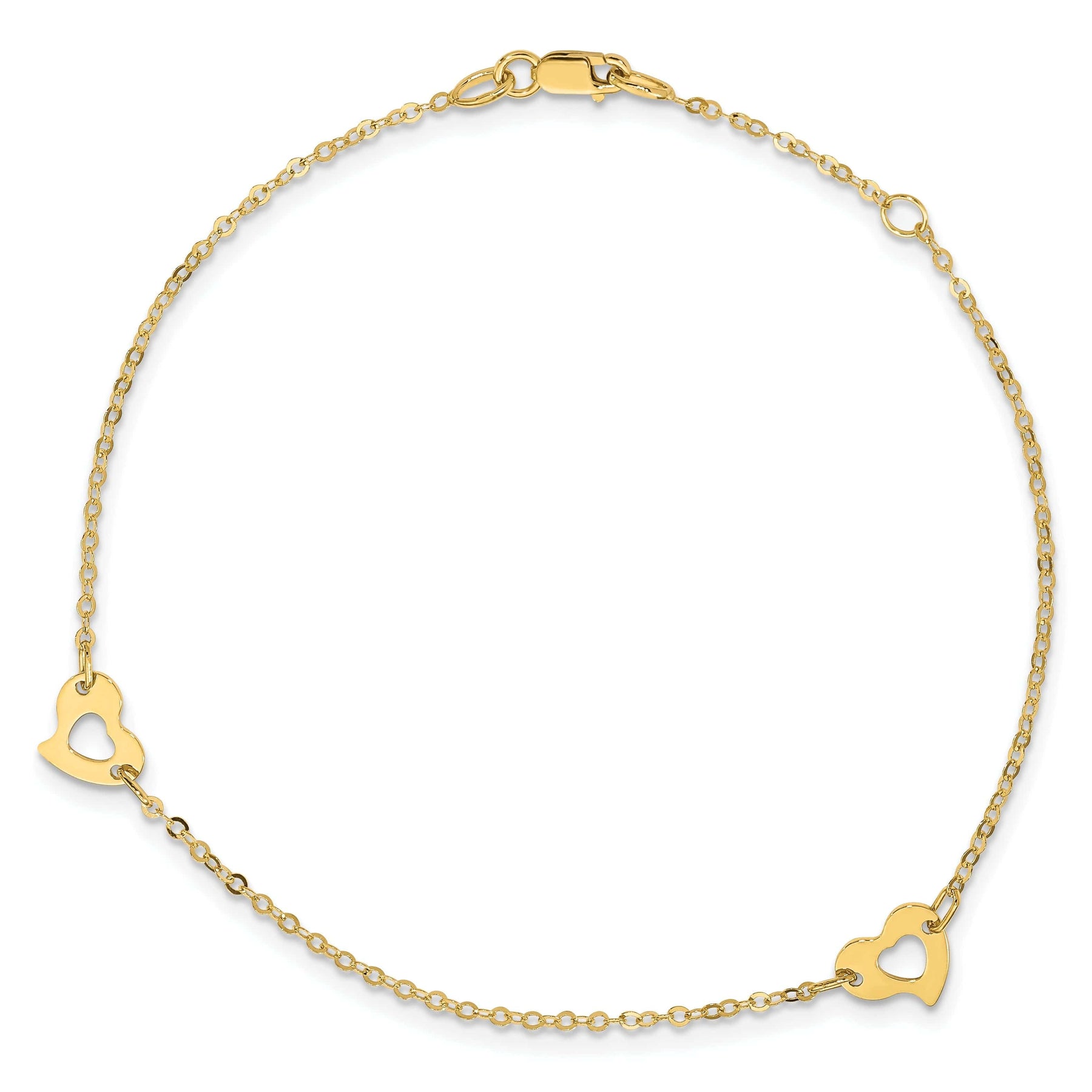 Treat yourself or surprise a loved one with this timeless and versatile piece of jewelry. Shop our 14k Yellow Gold Polished Heart Anklet today and add a touch of luxury to your accessory collection.