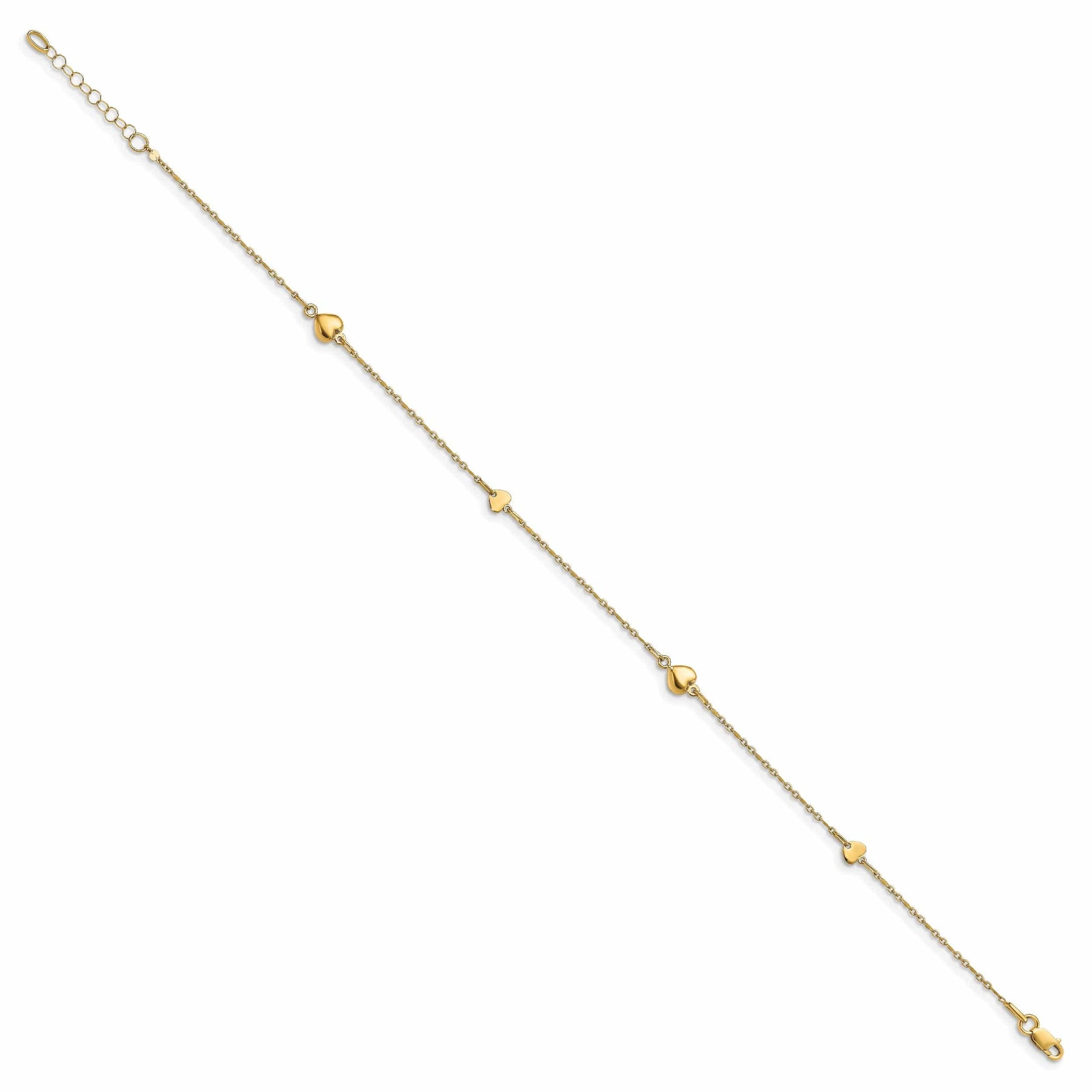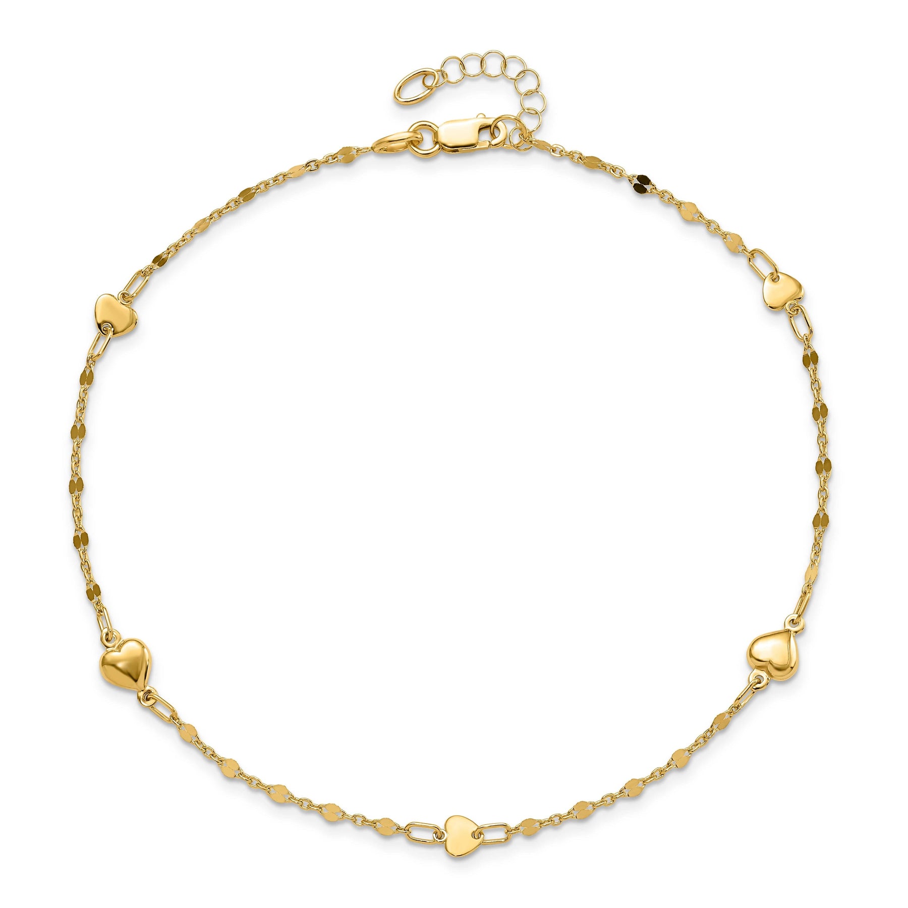 Measuring at the standard anklet length of 9 inches, this anklet also includes a 1-inch extender chain to ensure a perfect fit for any ankle size. The secure lobster clasp closure guarantees that this anklet will stay comfortably in place all day long. Whether you're dressing up for a special occasion or simply adding a subtle shimmer to your everyday look, this 14k Yellow Gold Polished Heart Anklet is the perfect accessory to elevate any ensemble.