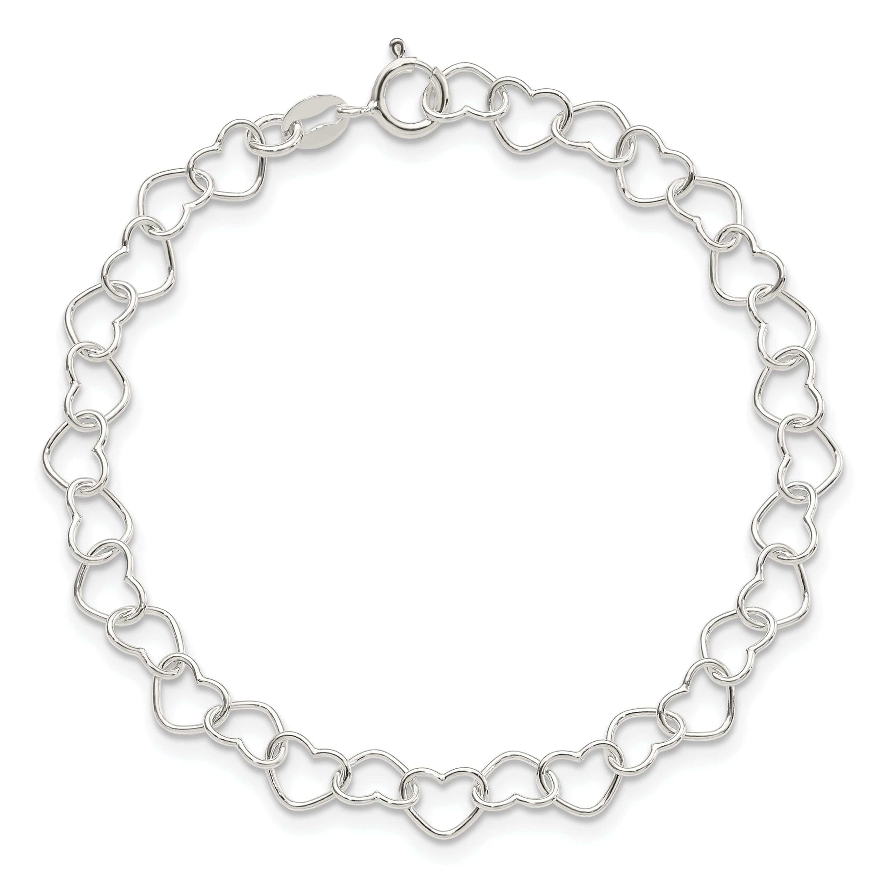 Add a touch of romance to your jewelry collection with our Sterling Silver Fancy Heart Link Bracelet. Order yours today and elevate your style with this timeless piece.