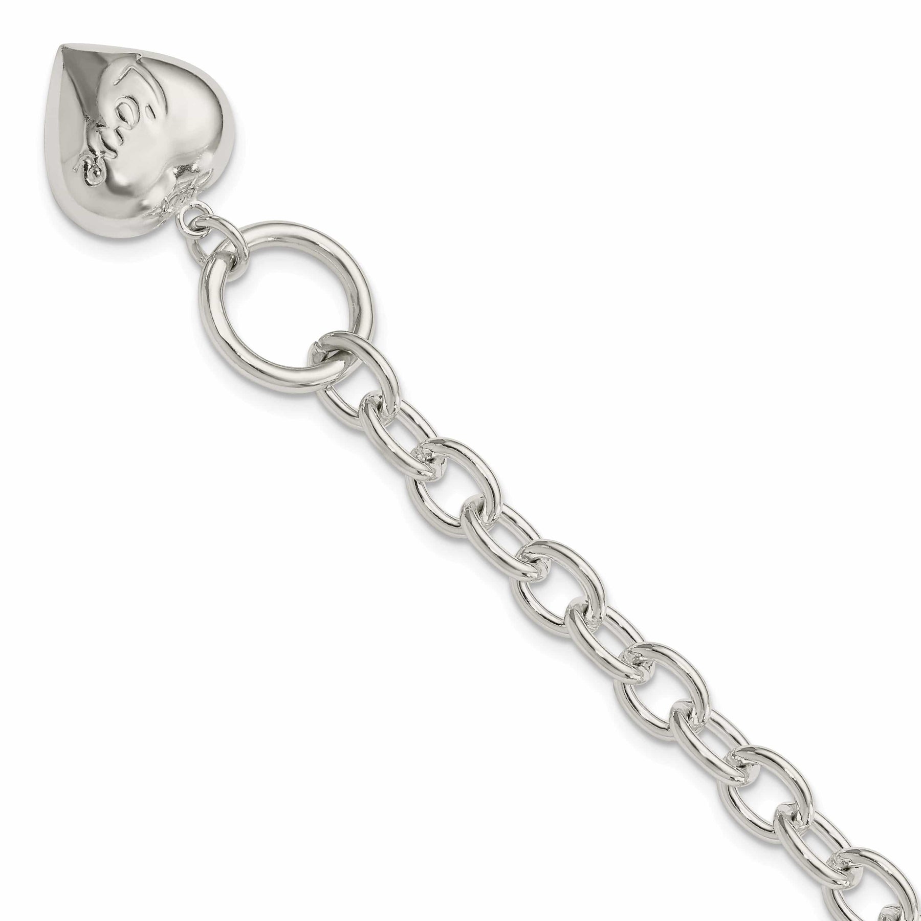 Whether you're dressing up for a special occasion or simply wanting to add a touch of sparkle to your everyday look, the Sterling Silver Puffed Heart Charm Bracelet is the perfect accessory. Treat yourself to this beautiful bracelet or surprise a loved one with a gift that they will treasure forever. Add a touch of romance and sophistication to your jewelry collection with this exquisite bracelet.