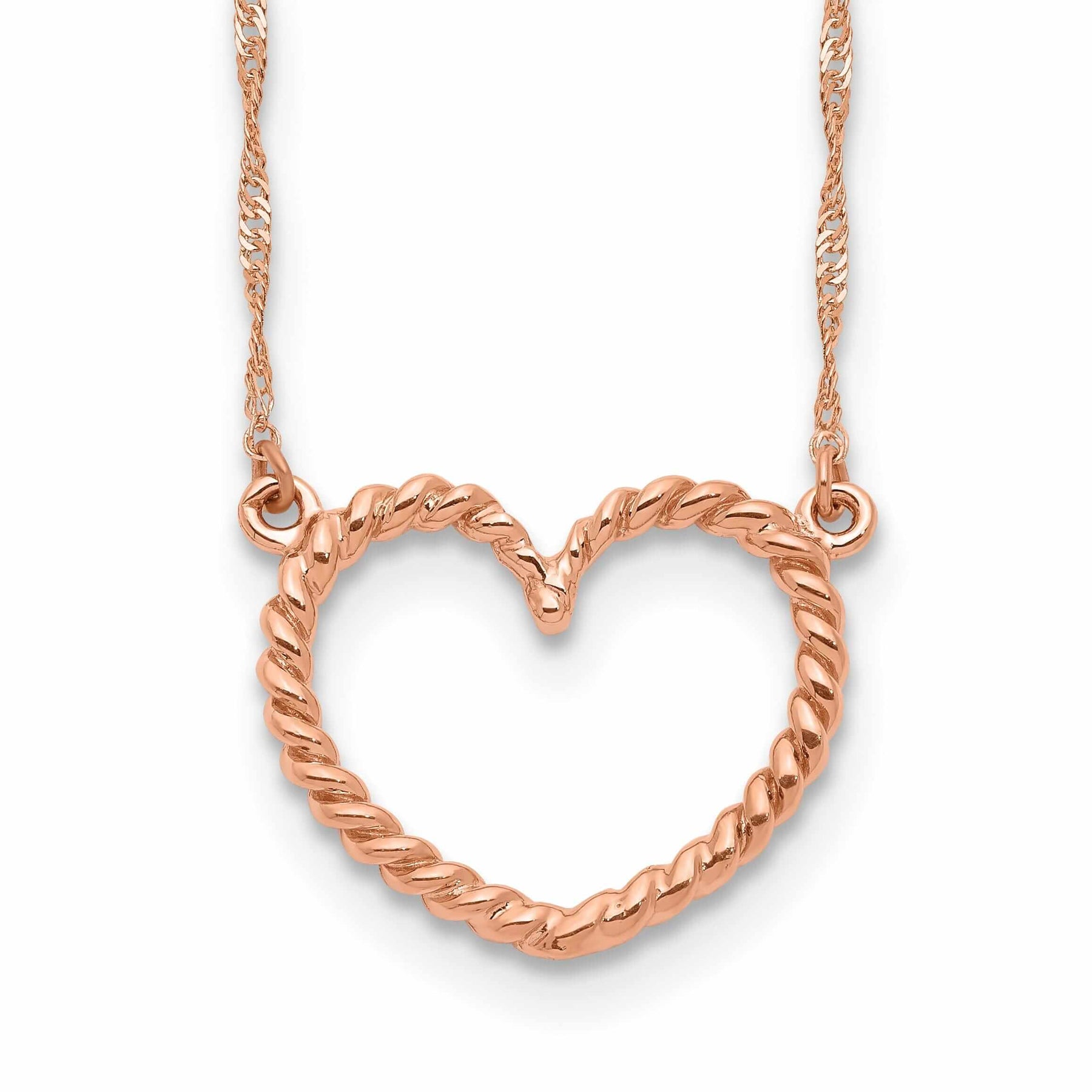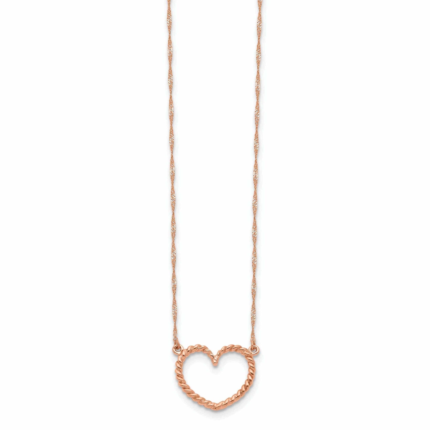 14k Rose Gold Solid Polished Textured Finish Heart Pendant Design in a 17-Inch Singapore Chain Necklace Set