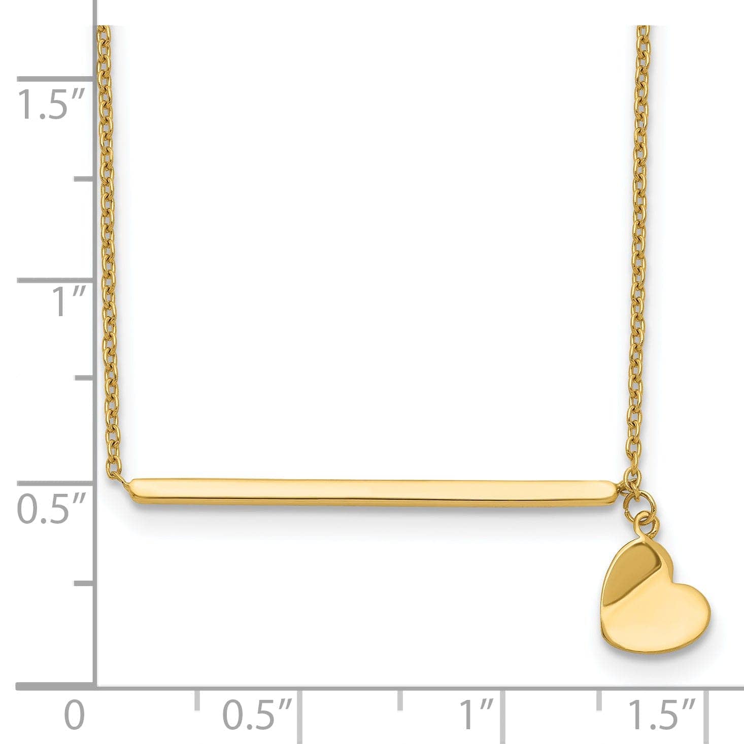 14k Yellow Gold Polished Finish Bar and Heart Design 13-inch Cable Chain with 2-inch ext Necklace