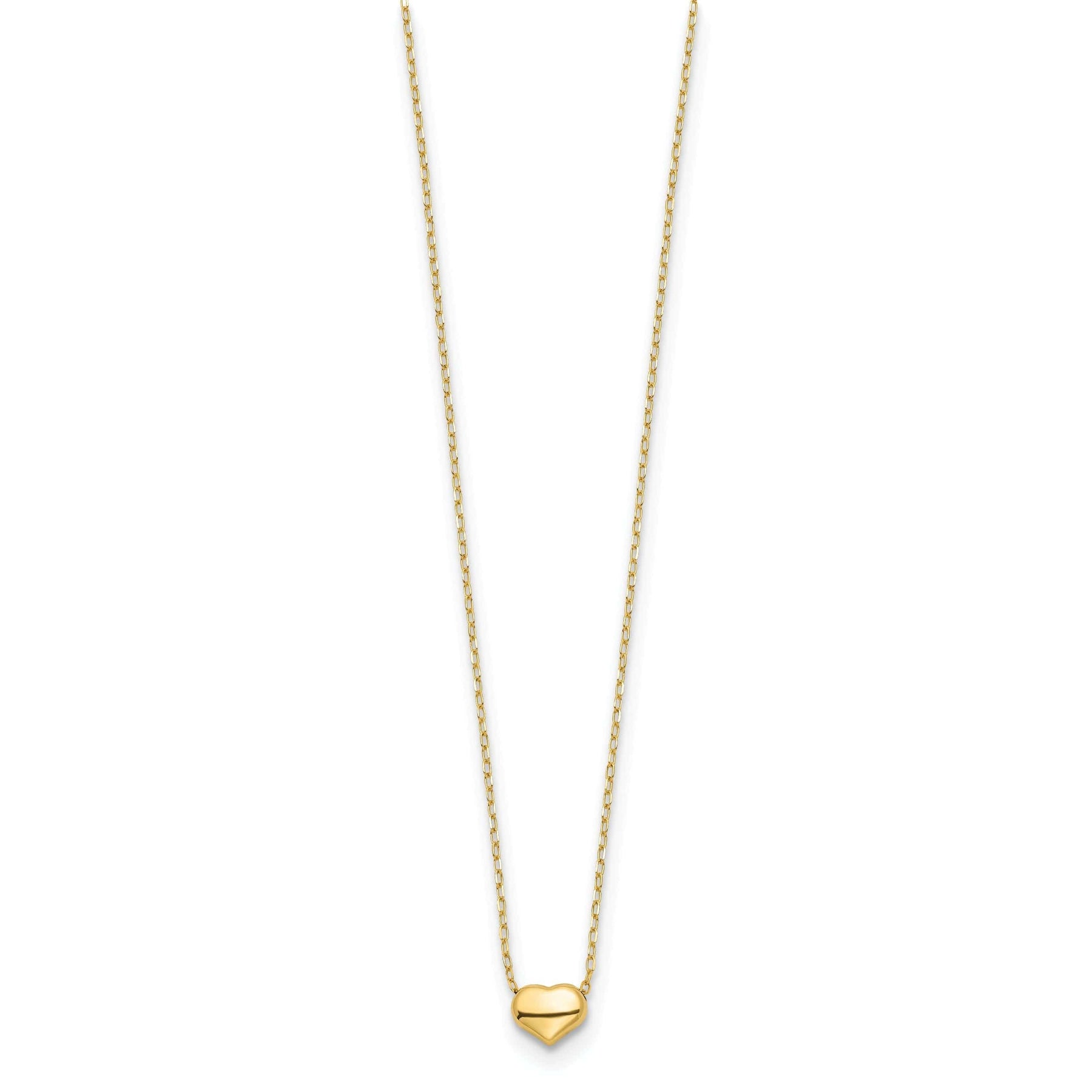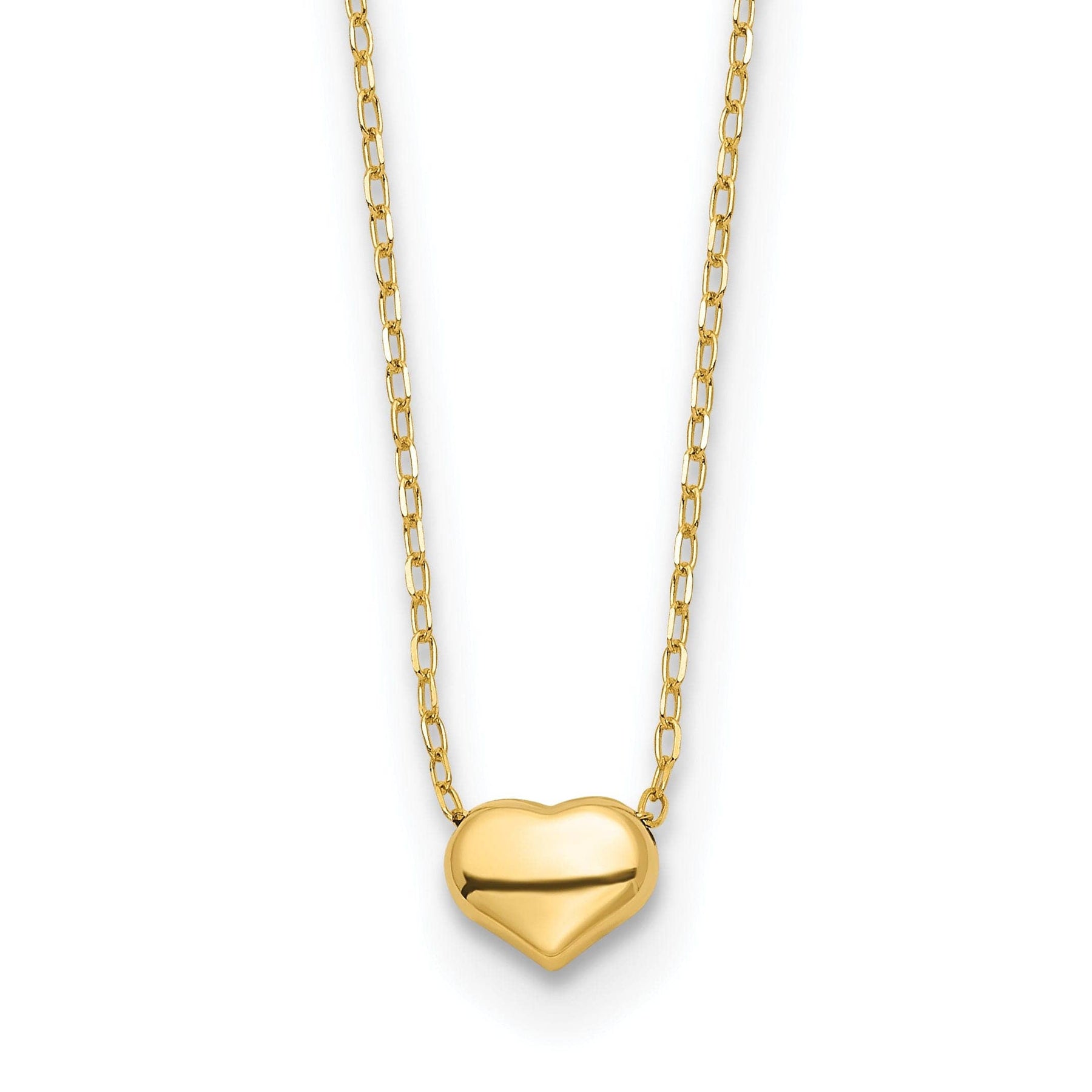 14k Yellow Gold Polished Finish Hollow Puff Heart with 16.5-inch Cable Chain Necklace