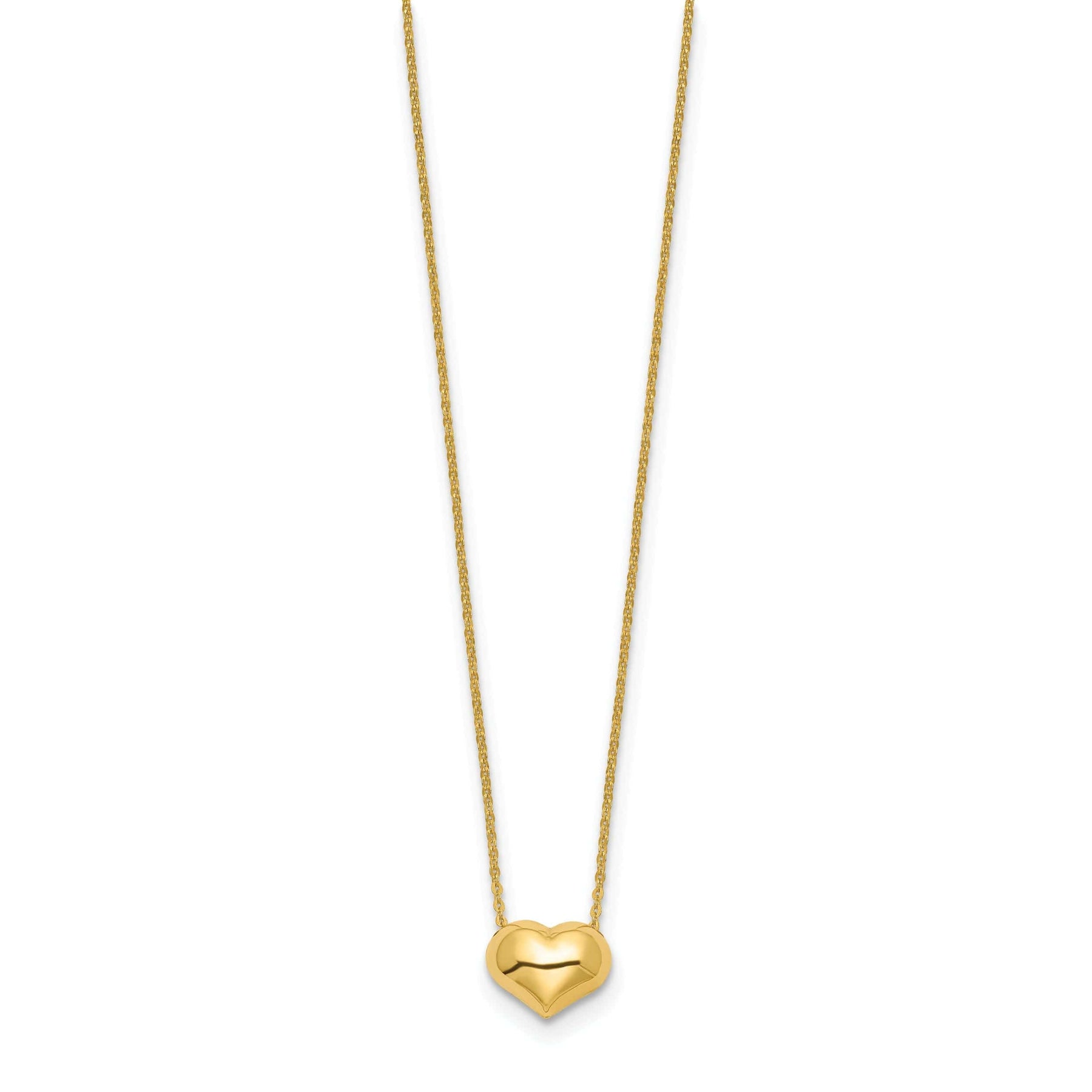 14k Yellow Gold Polished Finish Hollow Puffed Heart 16.5 inch Cable Chain Necklace Design