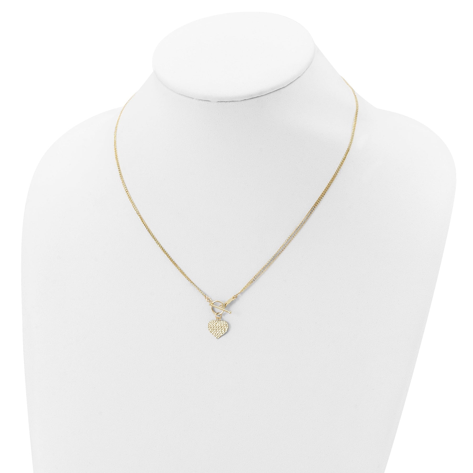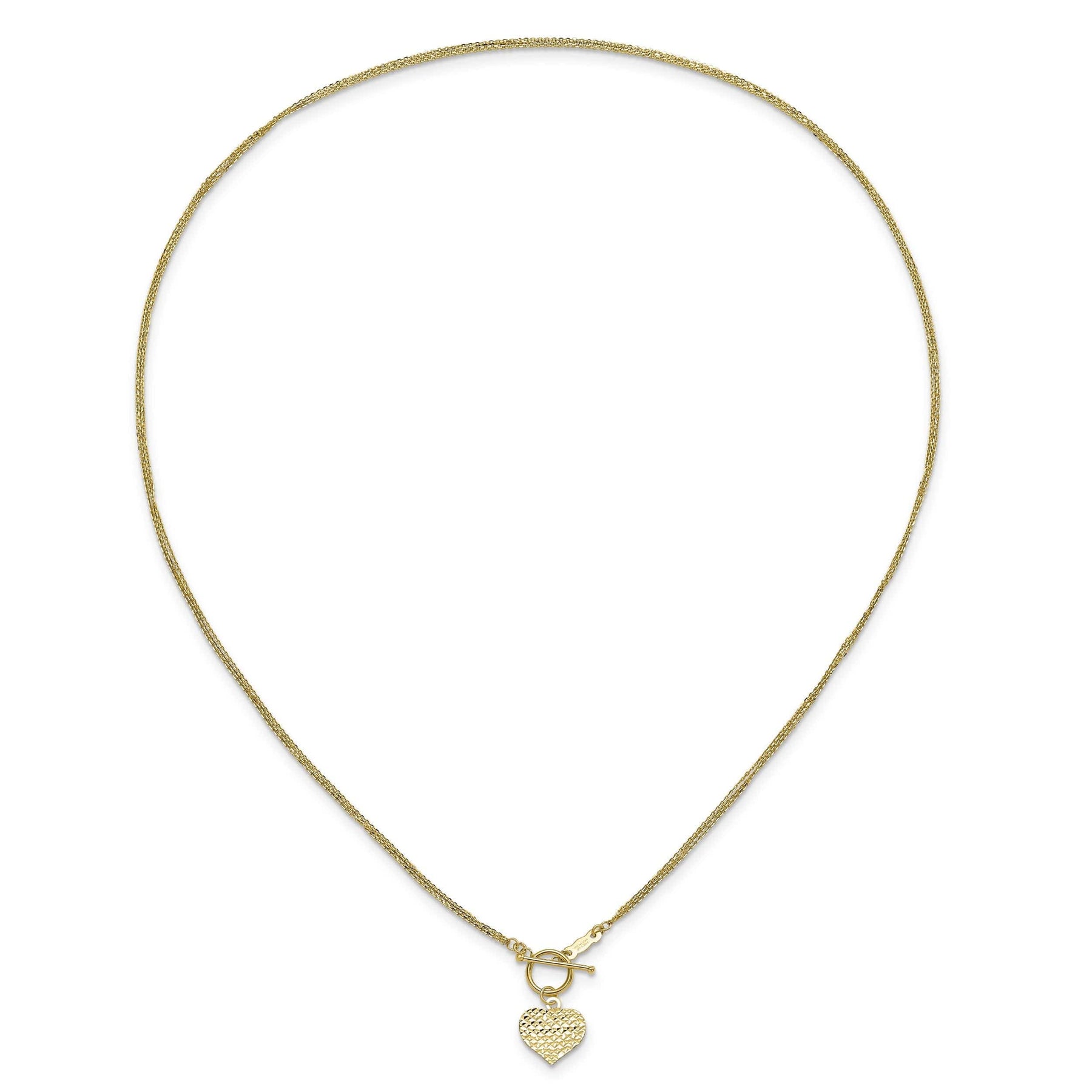 Elevate your style with this exquisite 14k Yellow Gold Solid Polished Diamond Cut Finish 3-Strand Heart Fancy Design Pendant in a 18-Inch Cable Chain Toggle Necklace Set. Experience luxury and beauty like never before with this sophisticated piece of jewelry.