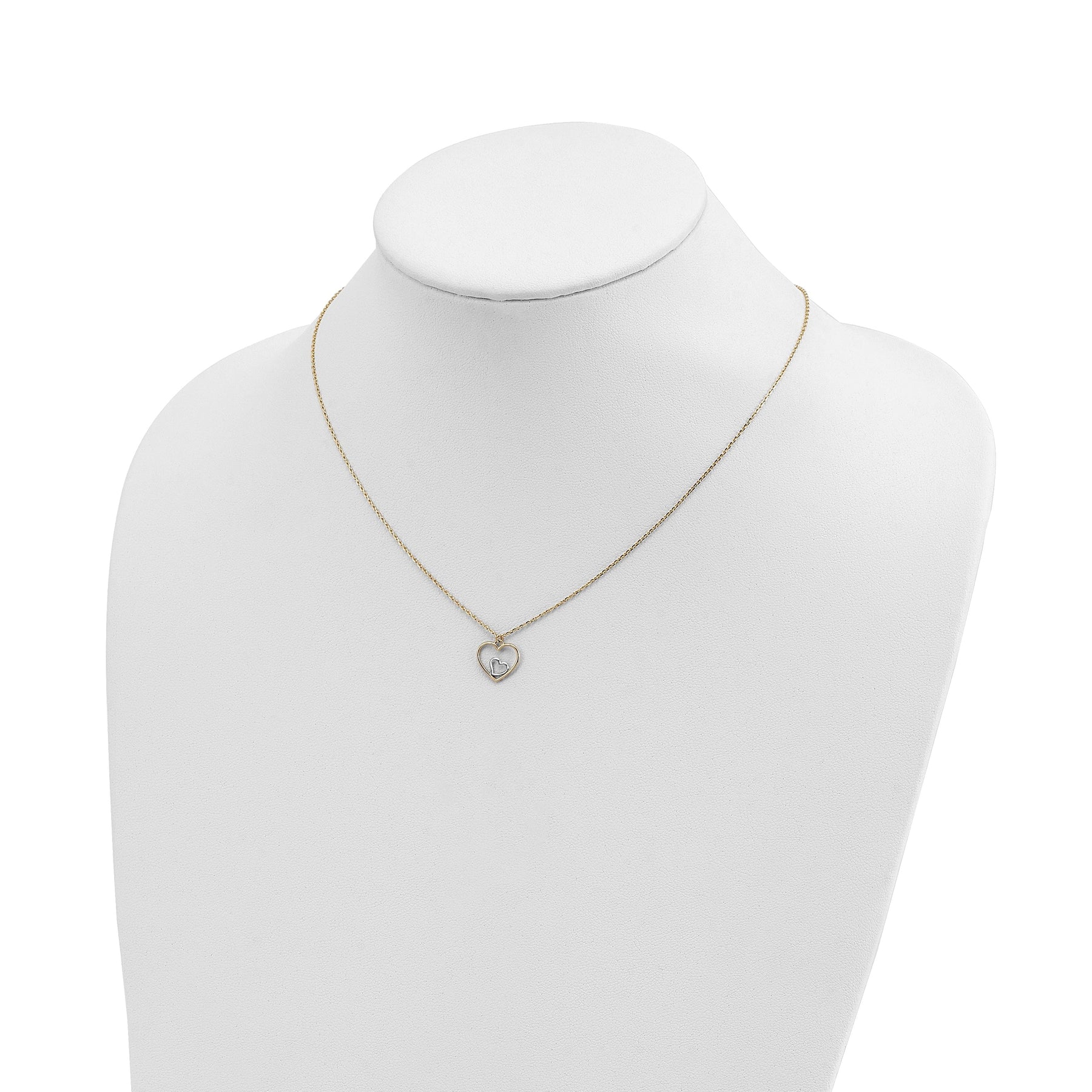 14k Yellow Gold, White Rhodium Hollow Polished Finish Heart in Heart Pendant Design in a 18-inch Cable Chain Necklace Set