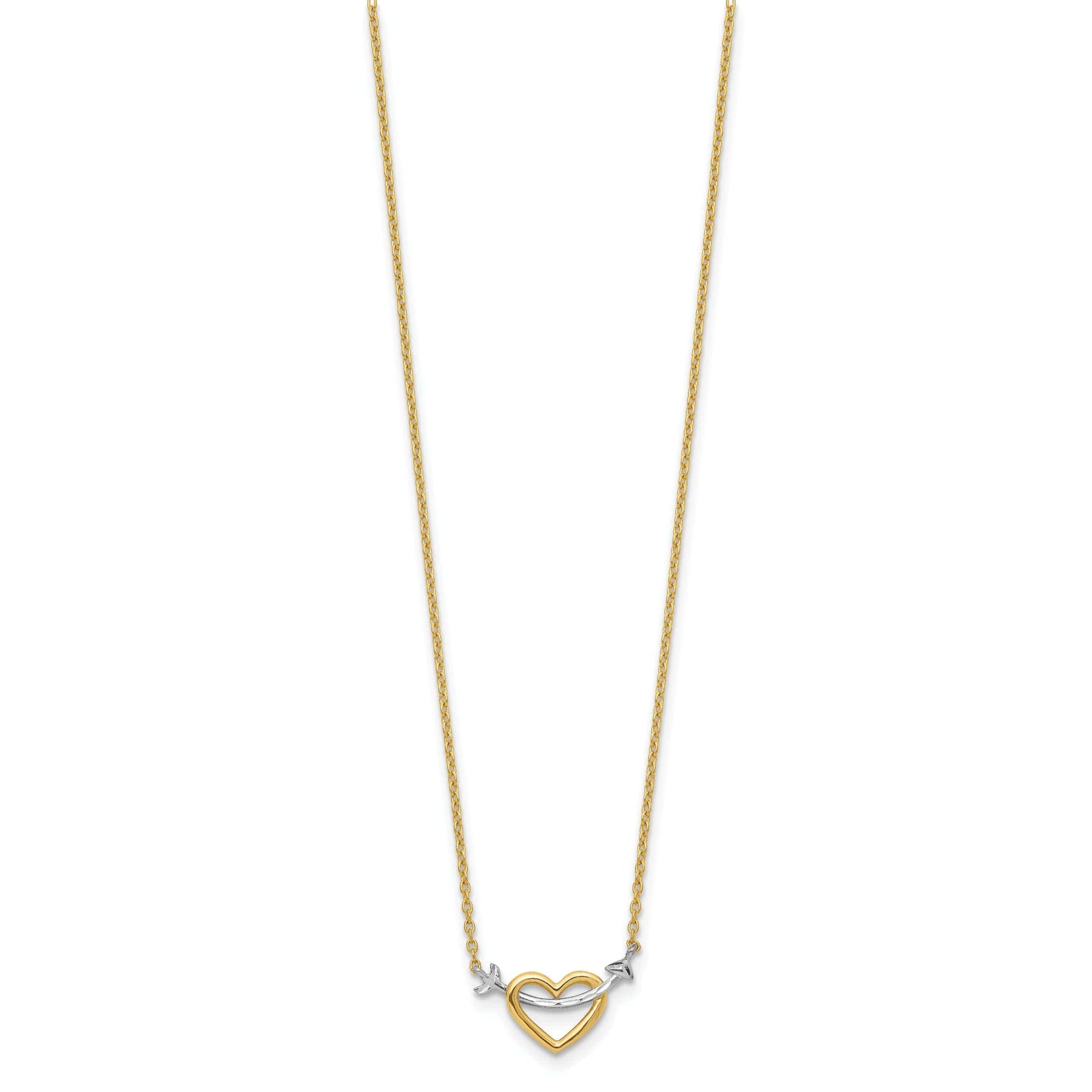 14k Yellow Gold, White Rhodium Polished D.C Finish Arrow in Heart Design Pendant in a 17-Inch Necklace Set