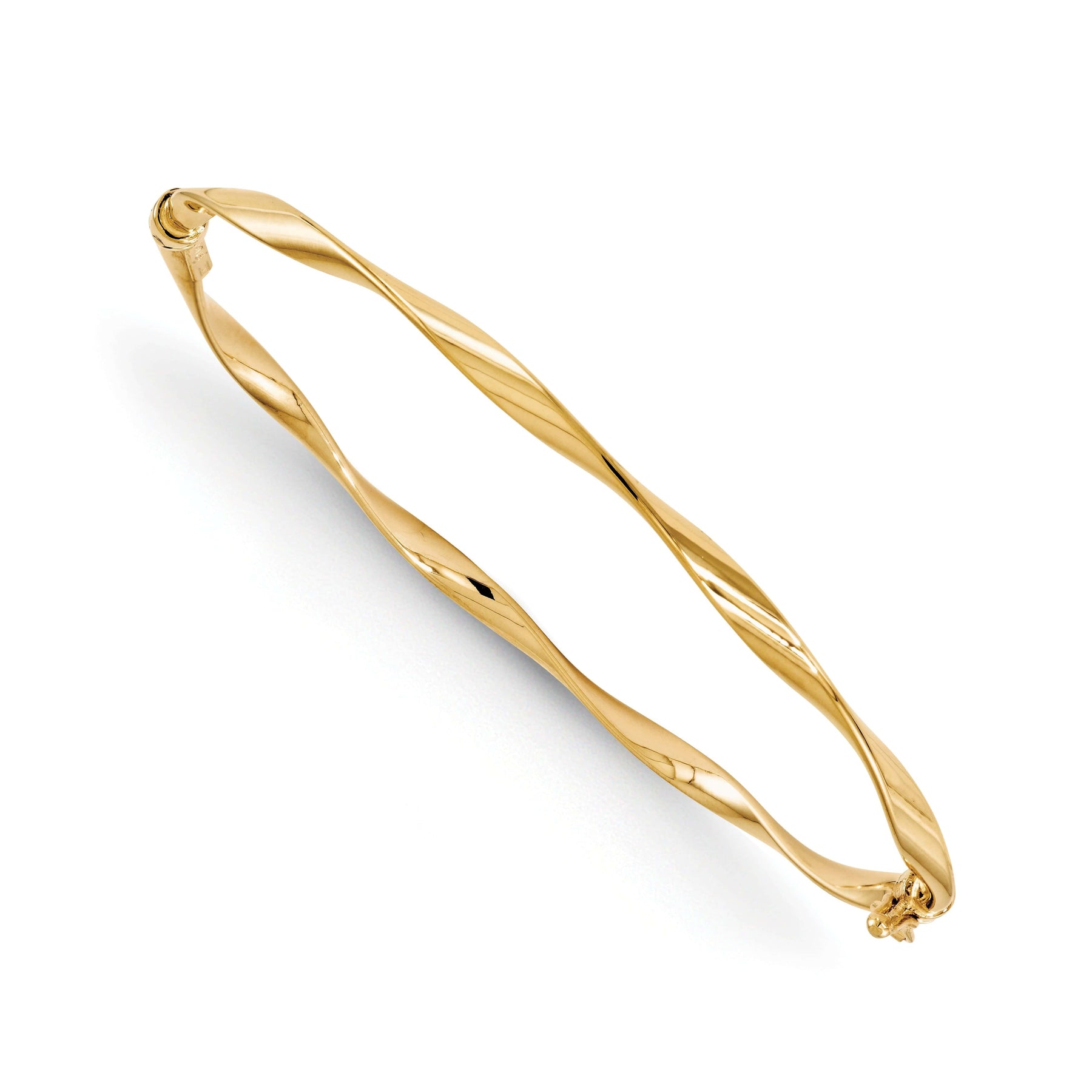 14K Yellow Gold Polished Twisted Hinged Bangle