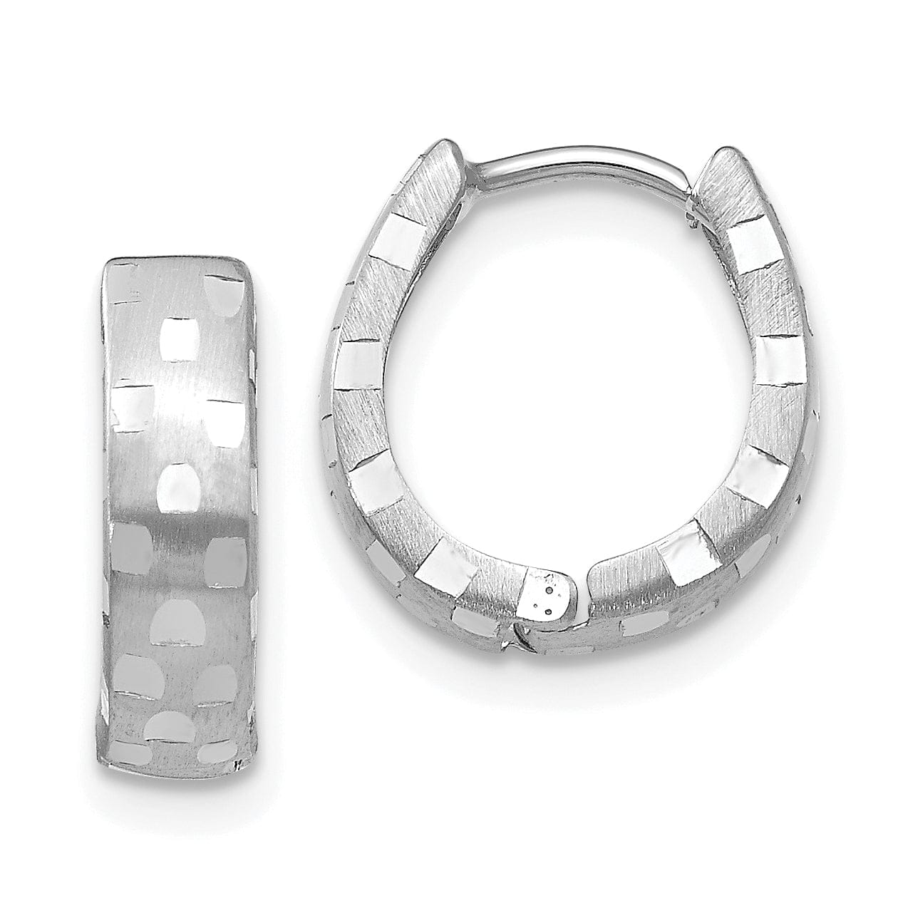 14K White Gold Gorgeous Polished 5mm DC Patterned Hinged Hoop Earrings