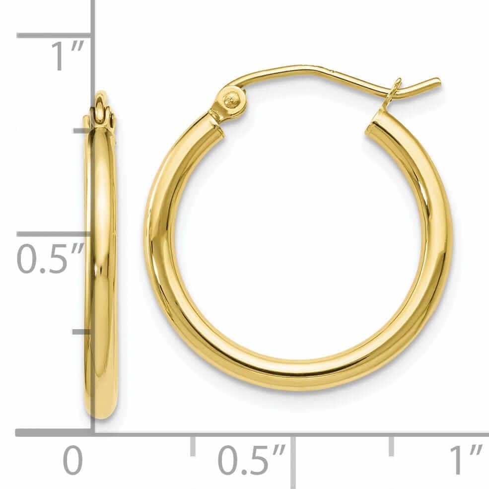 Treat yourself to these luxurious 10kt Yellow Gold Polished Hinged Hoop Earrings, or give them as a thoughtful gift to someone special. With their classic design and high-quality construction, these earrings are sure to be cherished for a lifetime. Add a touch of elegance and sophistication to any outfit with these stunning hoop earrings.