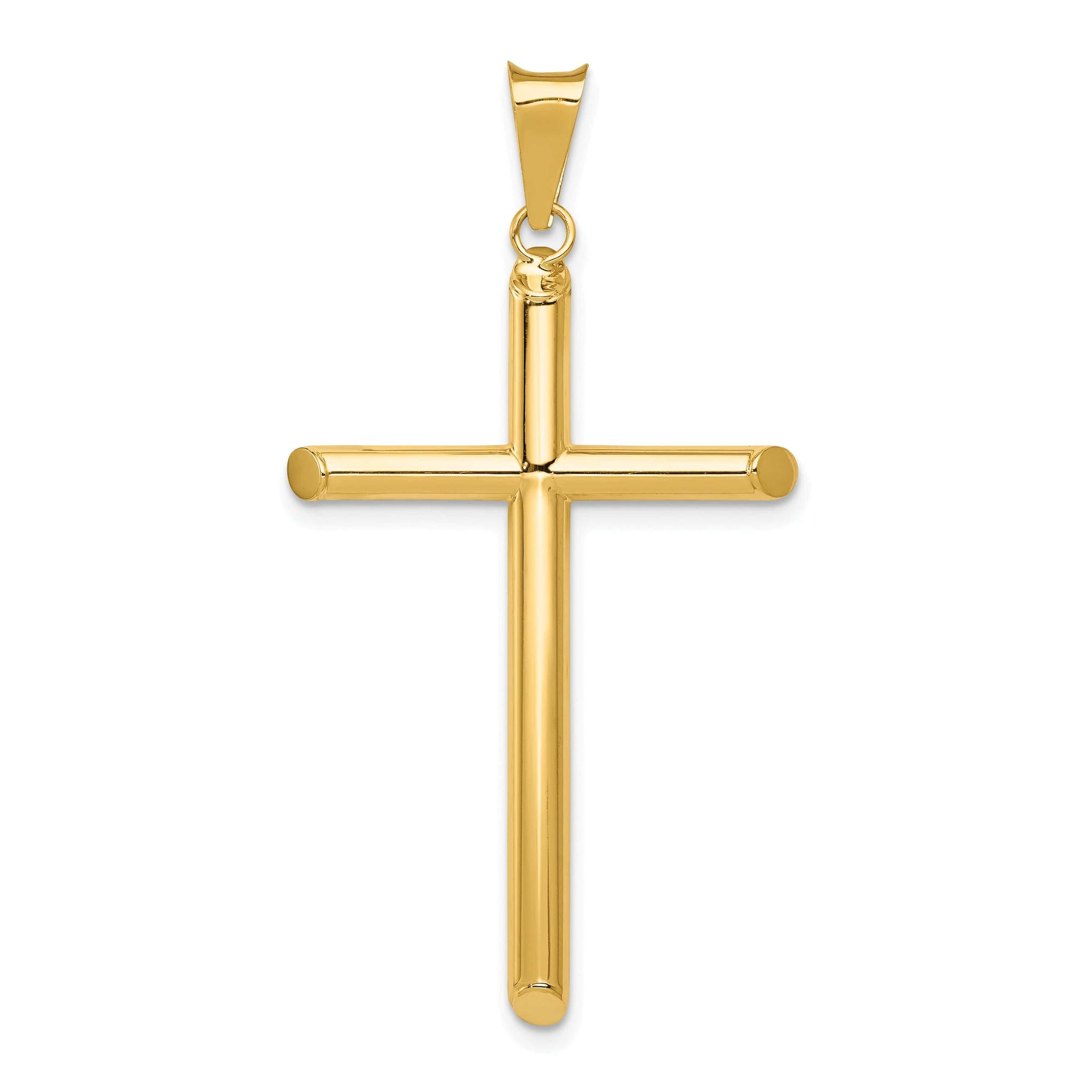 14K Yellow Gold Timeless Polished Tube Hollow Latin Cross Pendant