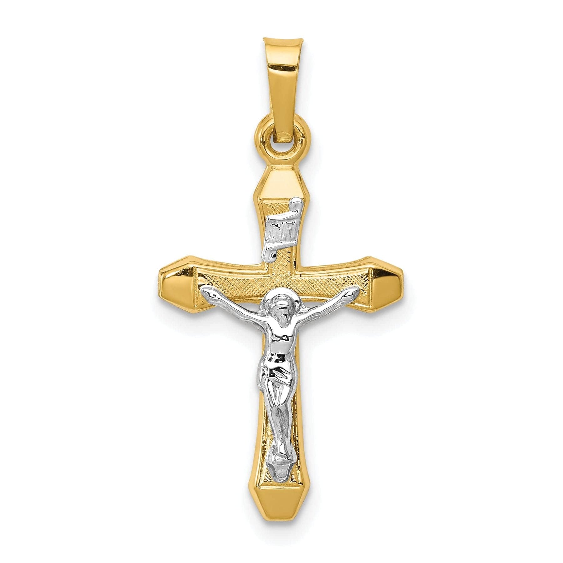 14k Two-tone Gold INRI Hollow Crucifix Pendant