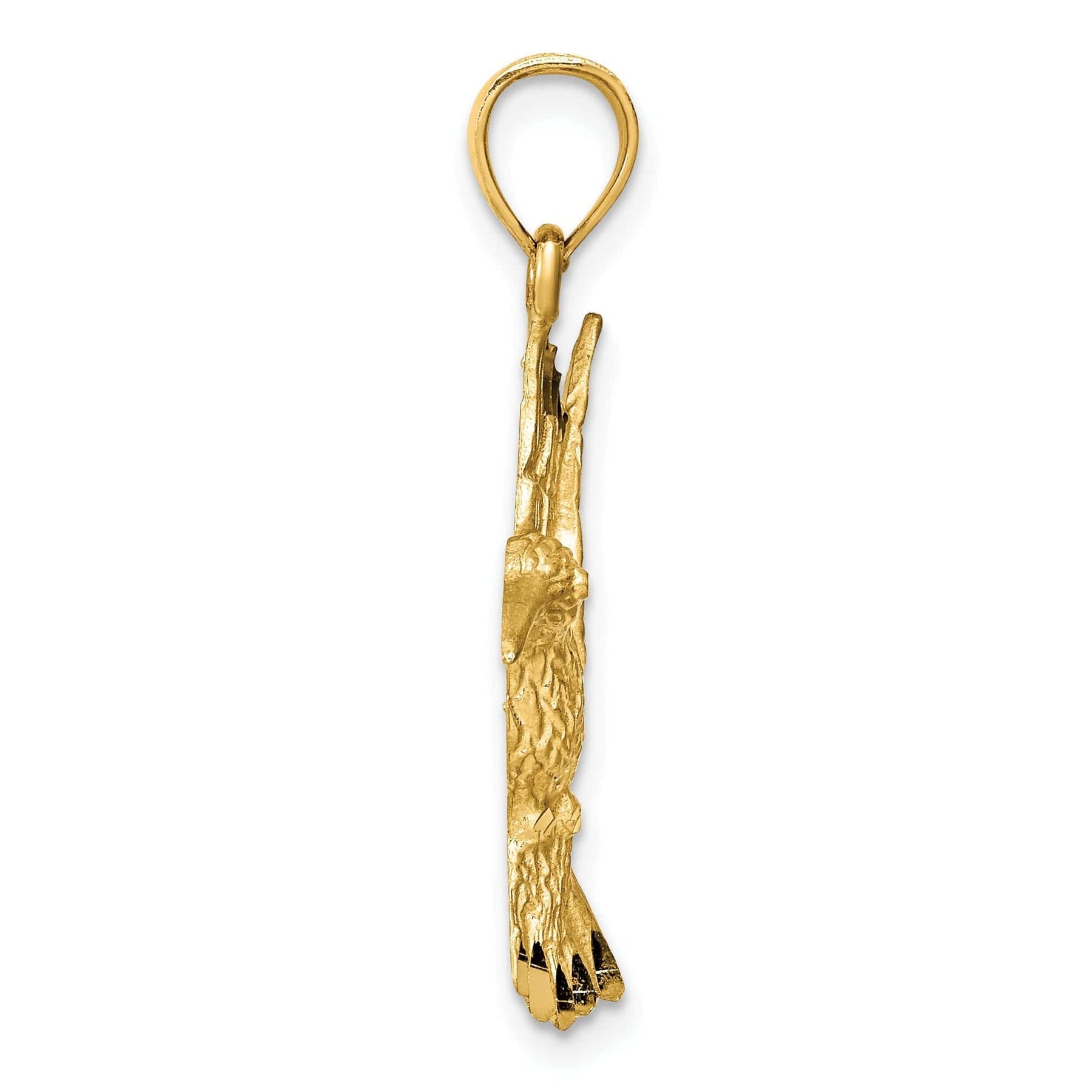 14K Yellow Gold Solid Textured Brushed Diamond Cut Finish Flying Hummingbird Design Charm Pendant