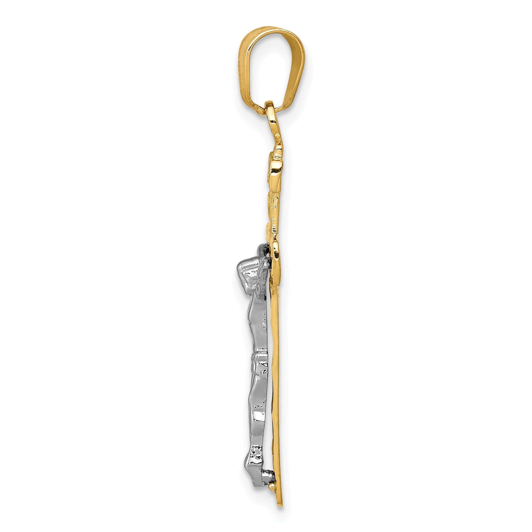 14K Two-Tone Gold Classic D.C Lattice INRI Cross Pendant