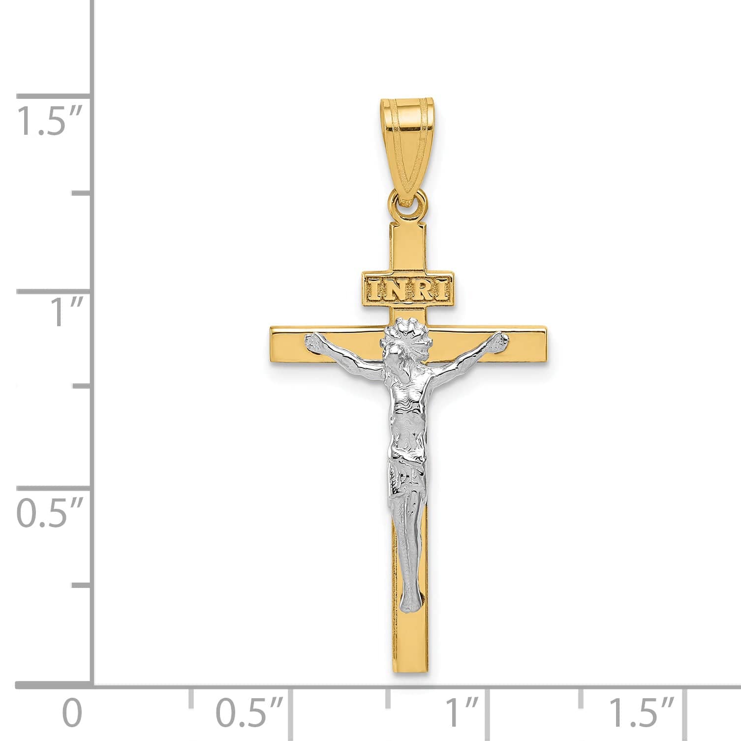 14K Two-Tone Gold Sleek INRI Cross Pendant