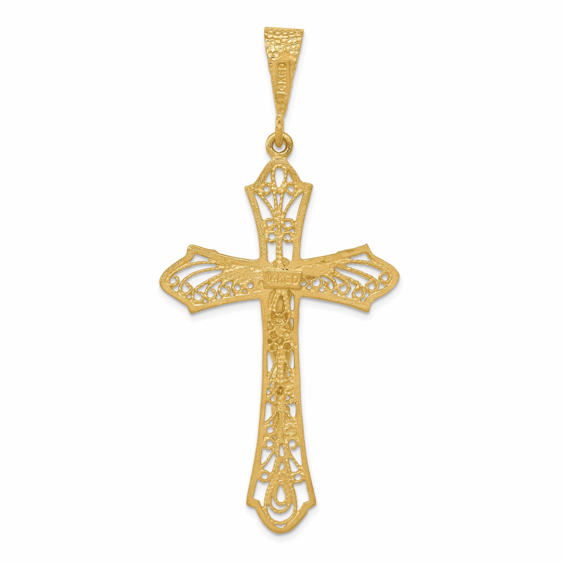 14K Yellow Gold Classic Satin Diamond-Cut Iona Crucifix Cross