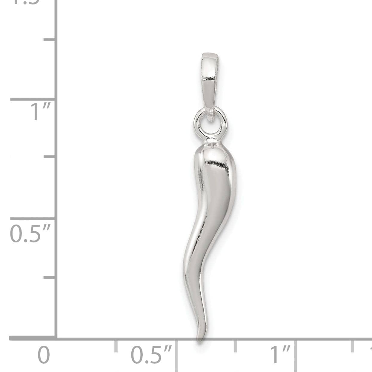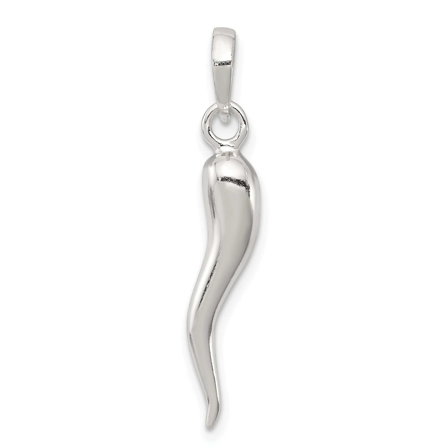 Solid Sterling Silver 3-D Italian Horn Charm Pendant