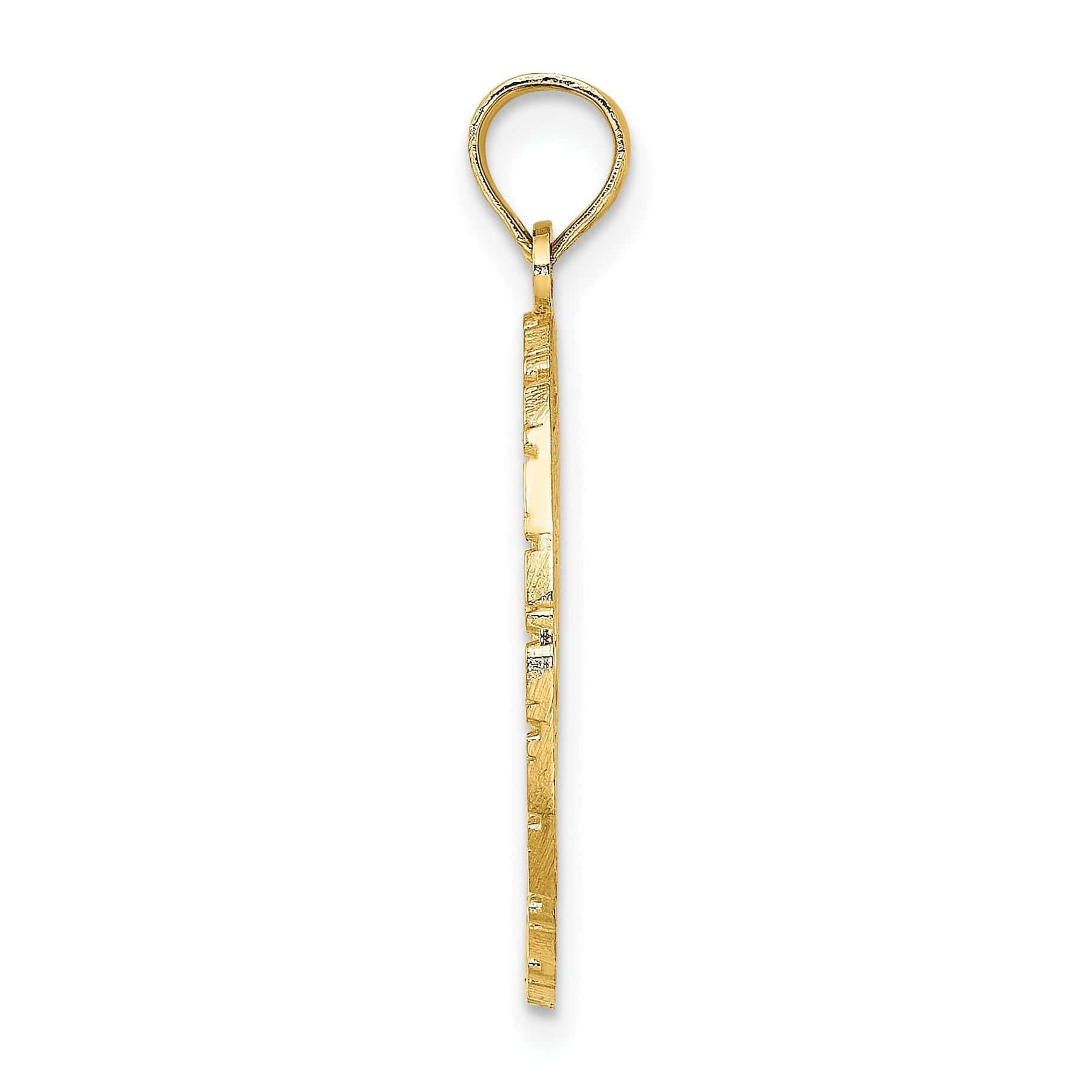 This stunning 14k Yellow Gold Charm Pendant is a true work of art. The polished textured finish adds a touch of elegance to the intricate JAMAICA with Bird & Flowers in Oval Shape Design. The attention to detail is evident in the delicate bird and flower motifs that adorn the pendant, giving it a unique and charming appeal.