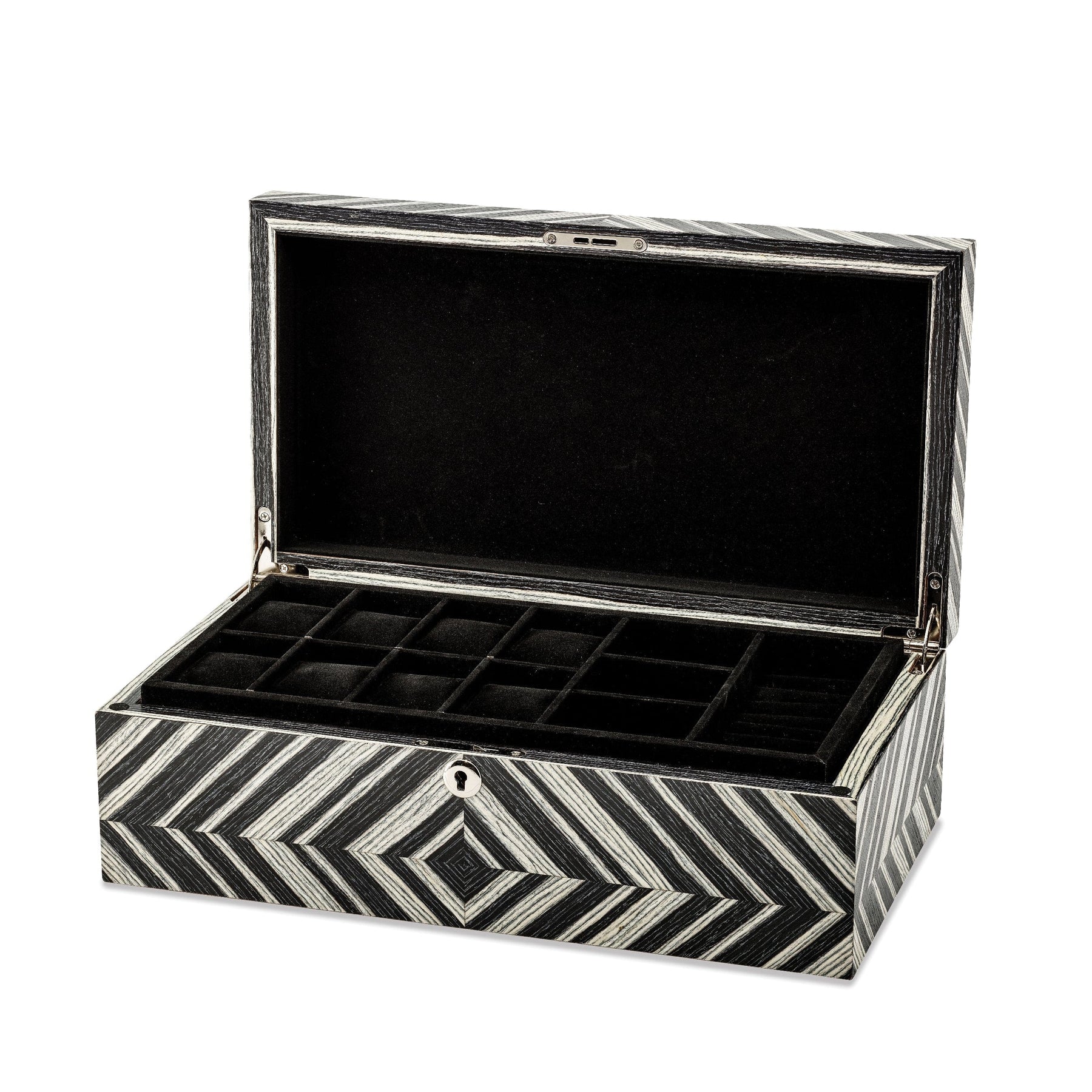 Whether you're looking to treat yourself or searching for the perfect gift for a loved one, our Brazilian Walnut Veneer Locking Jewelry Box is sure to impress. Store your treasures in style with this exquisite piece. Experience the beauty and functionality of this stunning jewelry box today.