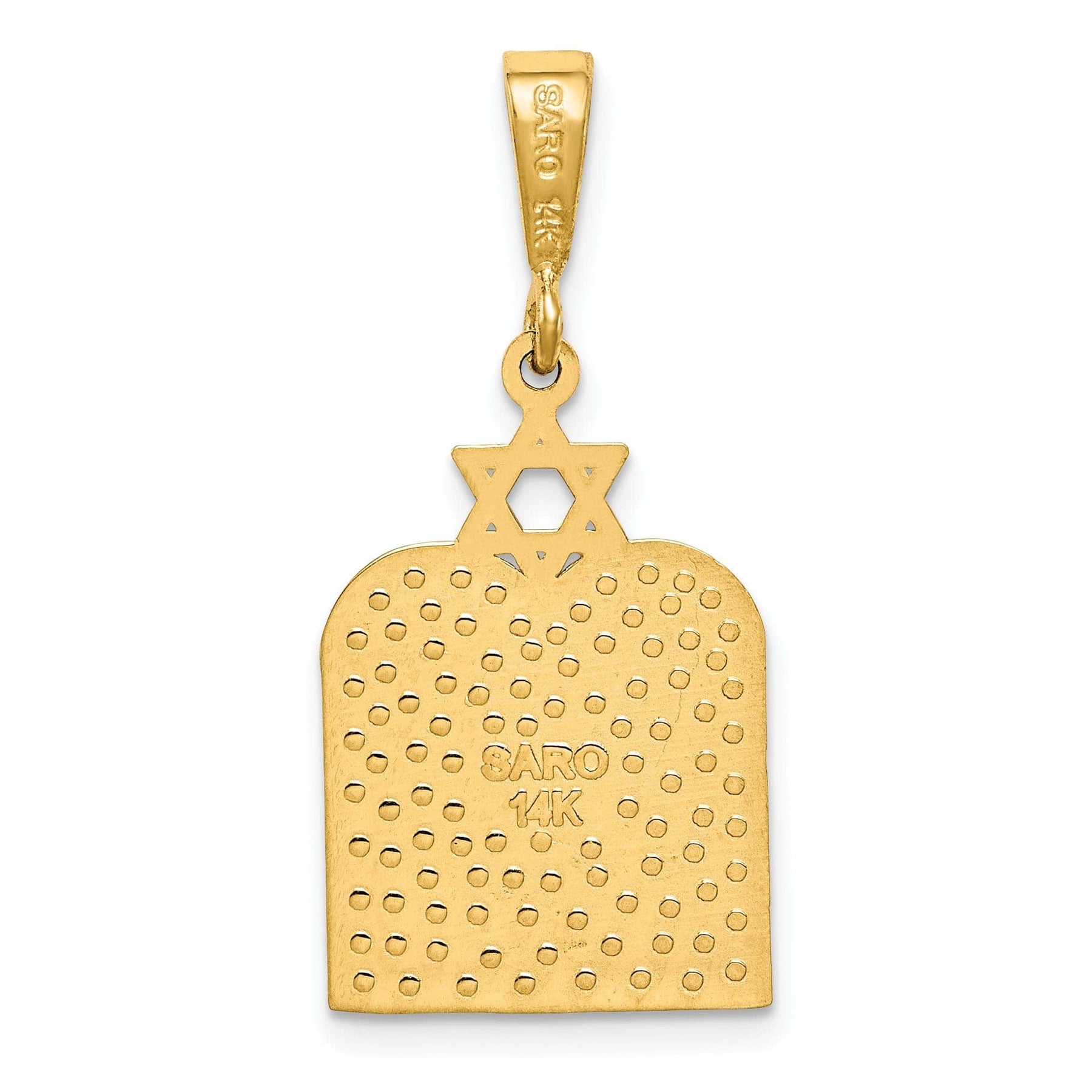 Add a touch of spiritual significance and timeless elegance to your jewelry collection with this exquisite 14K Yellow Gold 10 Commandment Tablets with Star Of David Pendant. It is a piece that you will treasure for years to come.