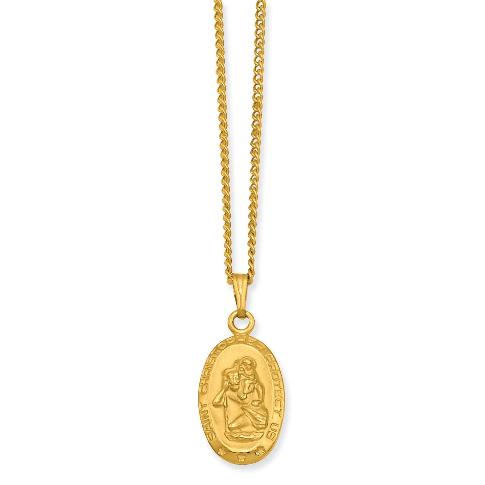This gorgeous Gold Plated Oval St. Christopher Medal Necklace is a beautiful and meaningful piece of jewelry that is perfect for anyone seeking a touch of elegance and spirituality in their everyday style.
