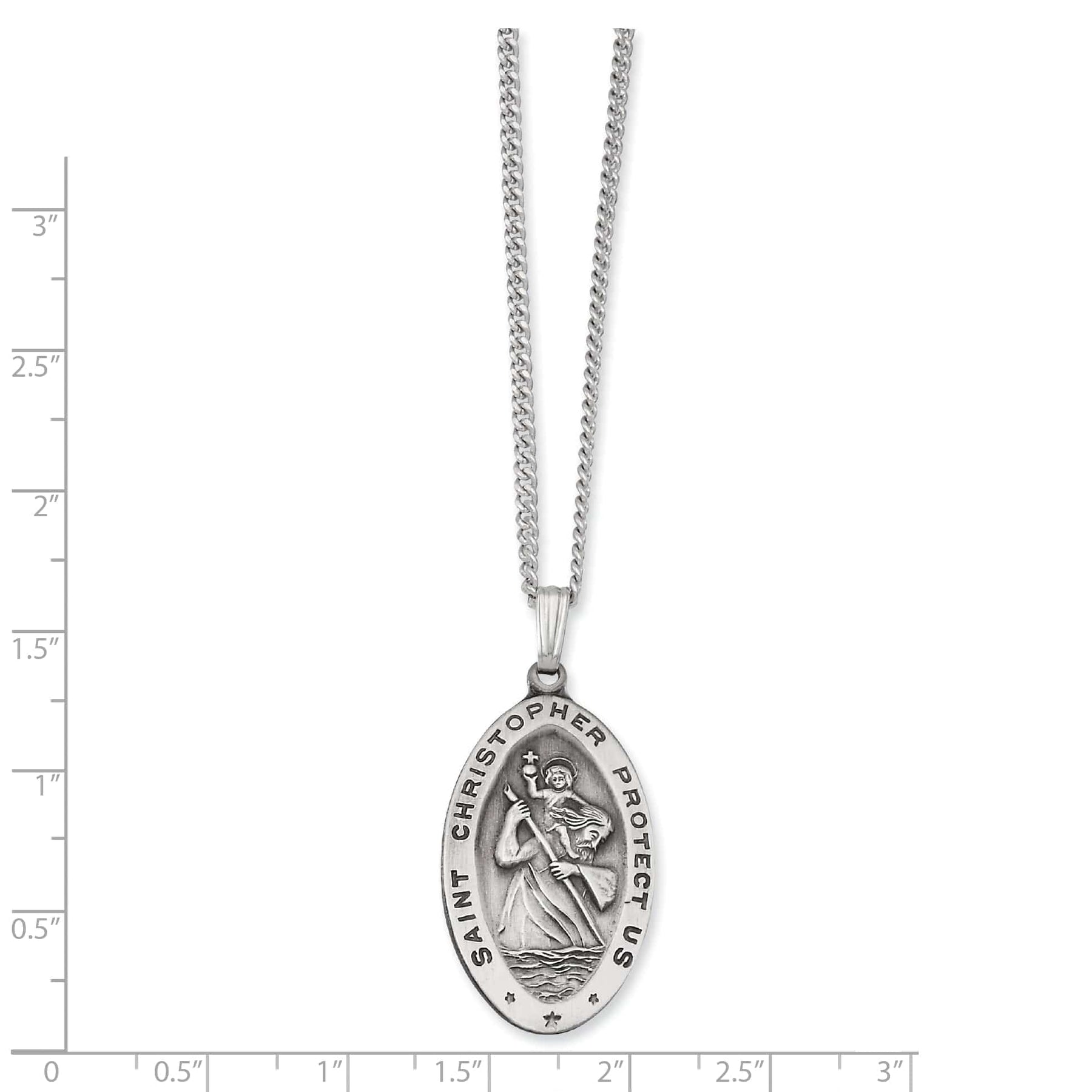 Rhodium Plated Oval St. Christopher Medal Necklace