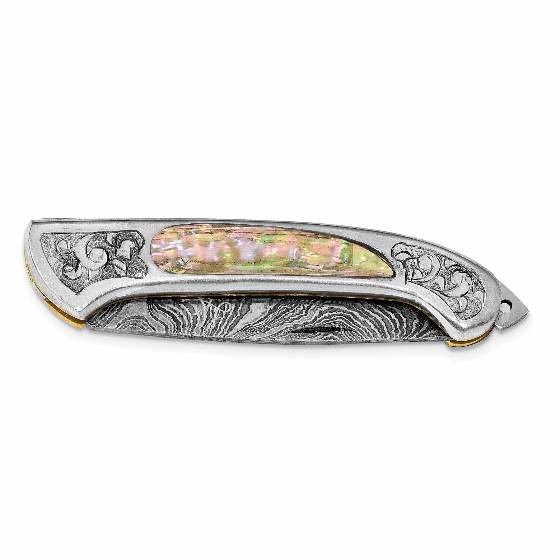 Lovely Rita's Knife Collection Damascus Steel 256 Layer Folding Blade Abalone Handle Knife