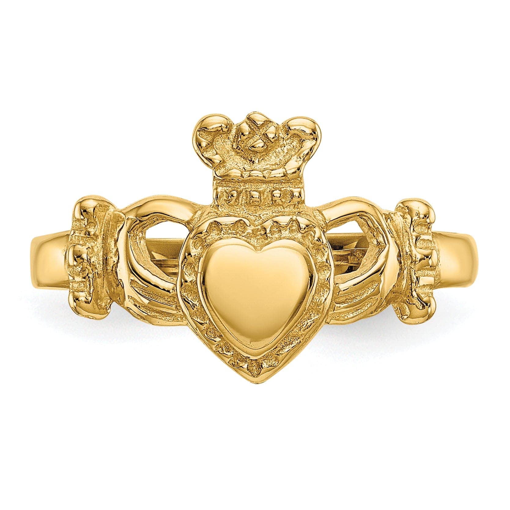 Whether you're looking to add to your jewelry collection or searching for a meaningful gift, our 14kt gold polished ladies claddagh ring is the perfect choice. Its classic design and high-quality craftsmanship make it a timeless piece that will be treasured for years to come.