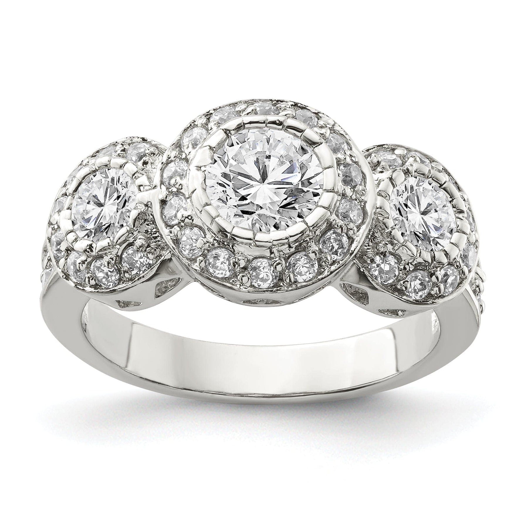 Sterling Silver Cubic Zirconia 3 Stone Ring