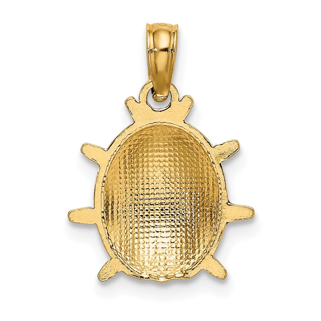 Add a touch of whimsical charm to your jewelry collection with this stunning 14k Yellow Gold Polished Red-Black Enameled Finish Concave Shape 3-Dimensional Ladybug Charm Pendant. Crafted from high-quality 14k yellow gold, this pendant features a vibrant red and black enameled finish that beautifully accents the intricate details of the ladybug design.