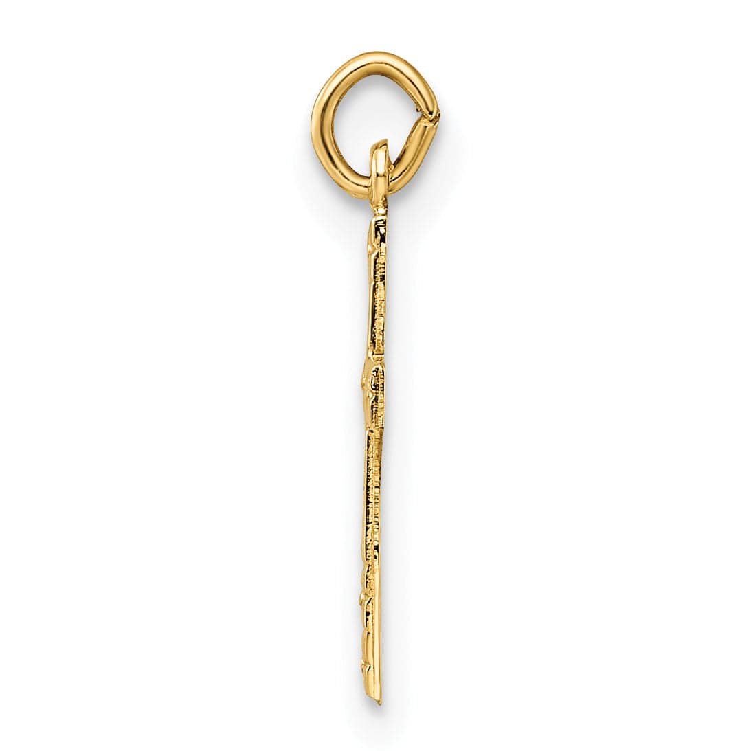 14K Yellow Gold Elegant Textured Detailed Latin Cross Pendant