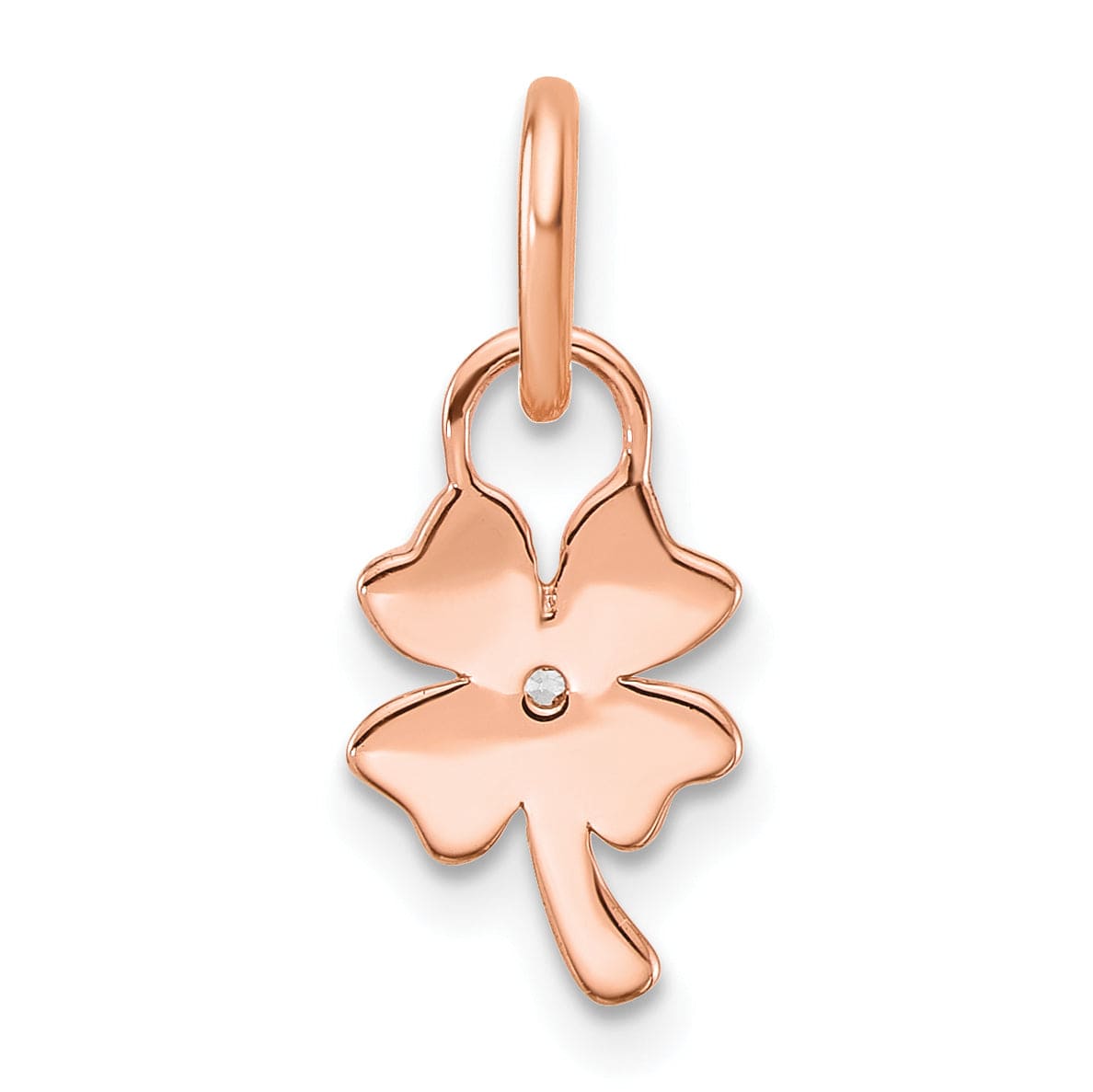 14K Rose Gold Polished Diamond Four Leaf Clover Charm Pendant