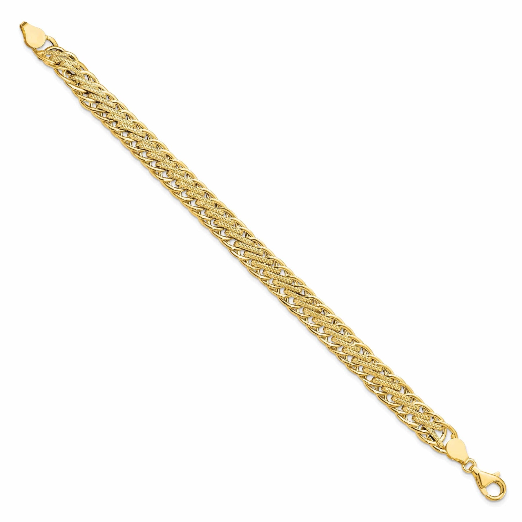 Add a touch of glamour and sophistication to your look with our Leslie's 14k Yellow Gold Polished Finish and Textured Fancy Link Bracelet. Upgrade your jewelry collection today.