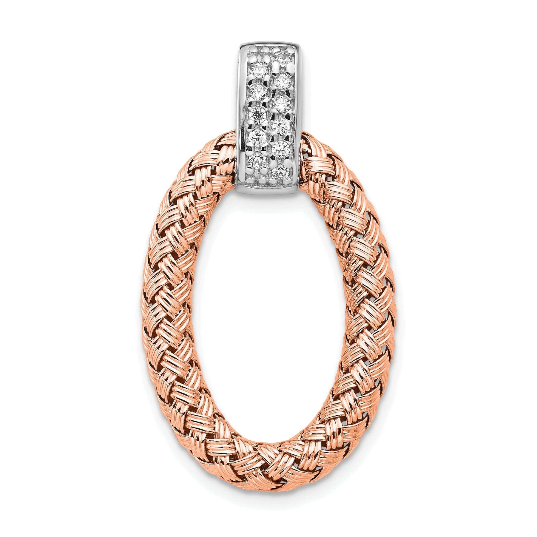 Silver Rose Gold Rhodium CZ Braid Oval Pendant