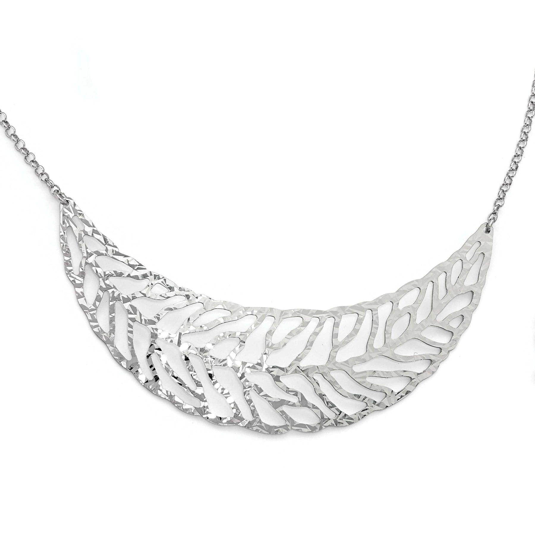Elevate your everyday look with Leslie's Sterling Silver Rhodium Plated Fancy Necklace. Crafted with exquisite attention to detail, this elegant necklace stands out with its intricate design and luxurious finish. Made from high-quality sterling silver and plated with rhodium, this necklace not only boasts a stunning shine, but also ensures durability and long-lasting wear.