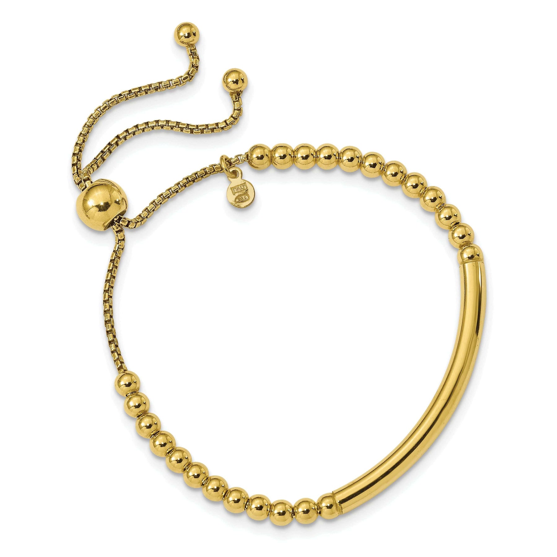 The timeless combination of silver and gold-plated beads adds a touch of luxury to any outfit, making it the perfect accessory for both casual and formal occasions. Whether you're looking to treat yourself or surprise a loved one with a thoughtful gift, Leslie's Sterling Silver Gold-plated Beaded Adjustable Bracelet is the perfect choice. Upgrade your accessory game with this stunning bracelet today.