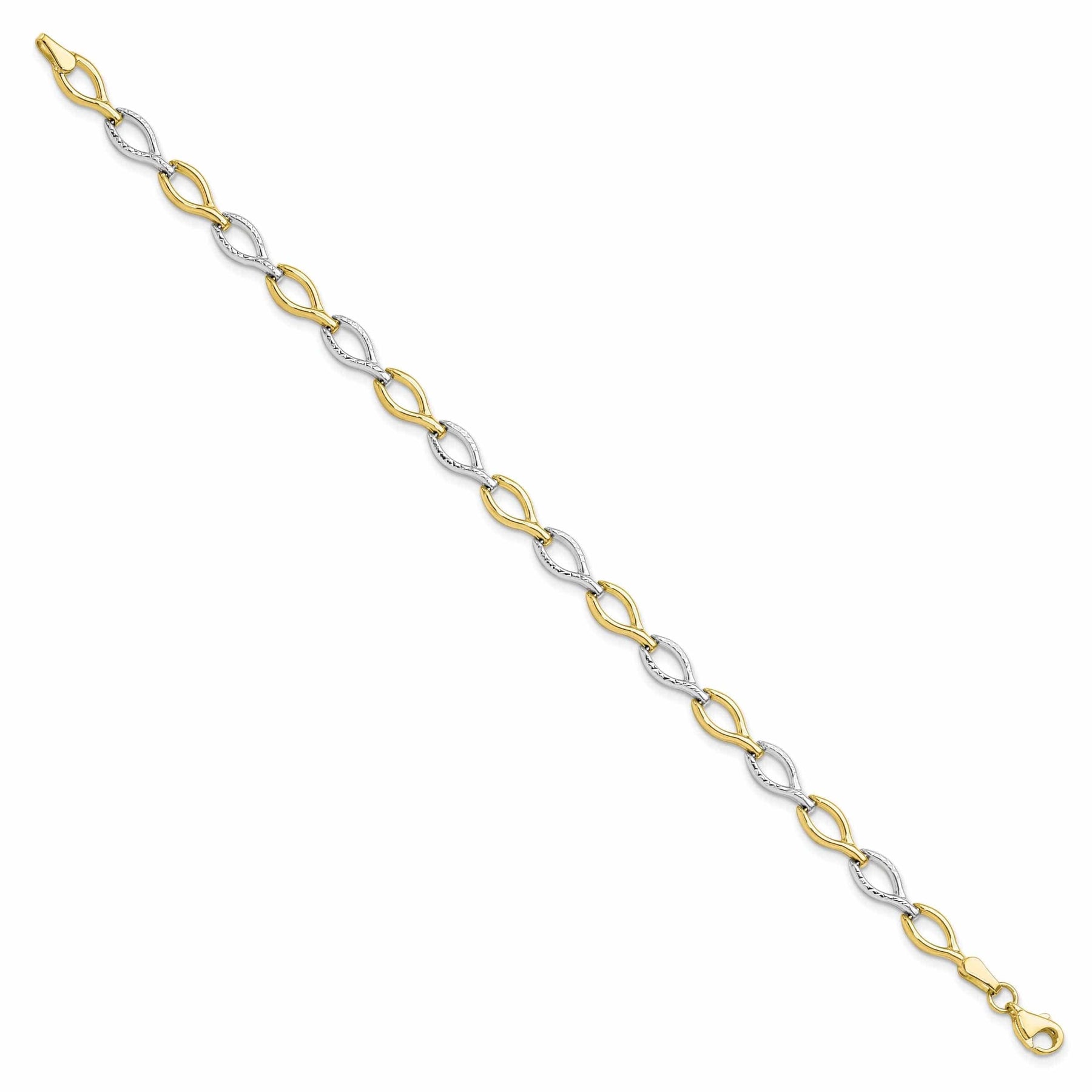 Beautifully crafted and designed to last, Leslie's 10k Two Tone Gold Polished Finish Diamond Cut Bracelet is the perfect choice for anyone who appreciates timeless elegance and impeccable craftsmanship. Add this exquisite bracelet to your collection today and enjoy its beauty for years to come.