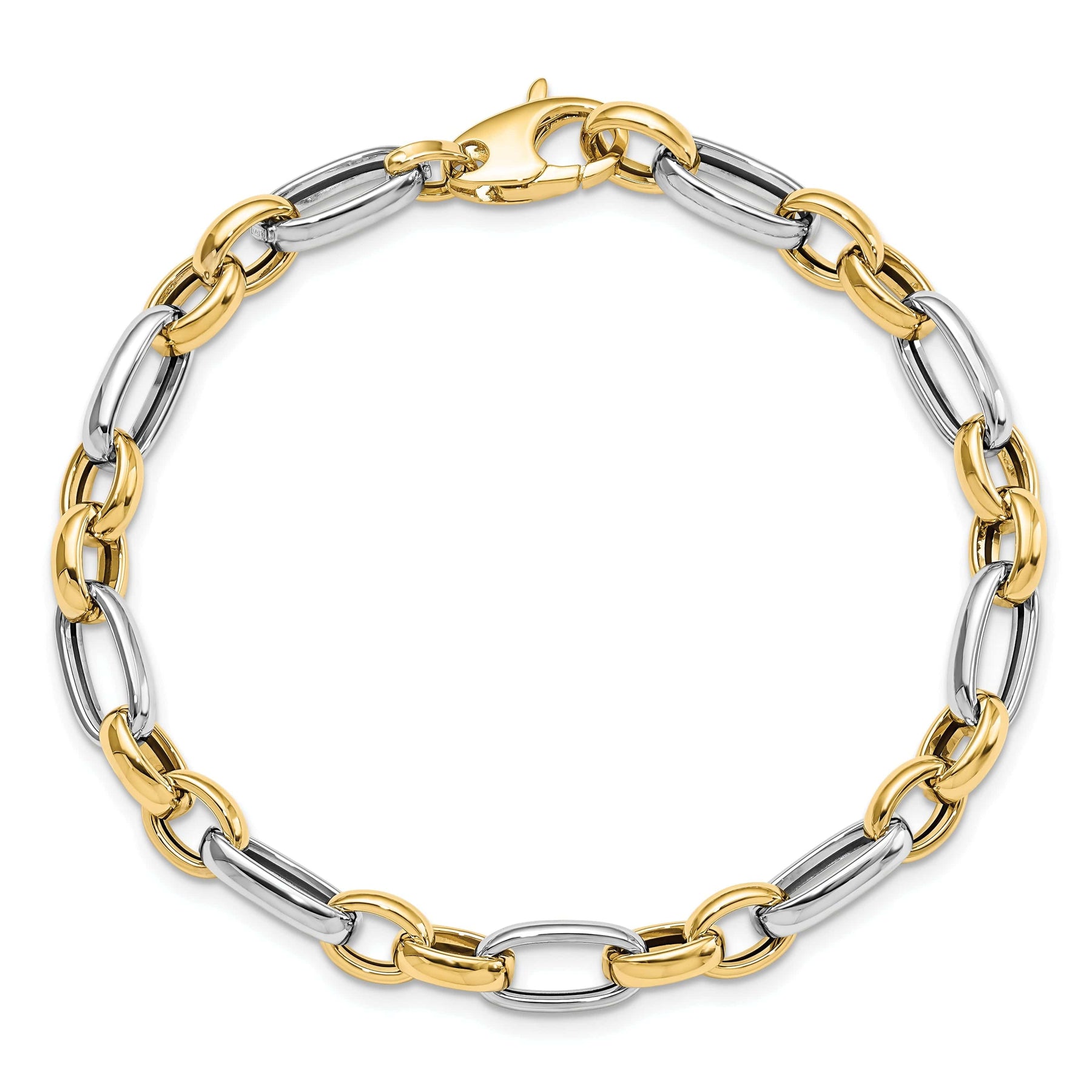 Whether you're dressing up for a special event or adding a touch of glamour to your everyday look, this two tone gold bracelet is the perfect choice. It also makes a great gift for someone special in your life. Elevate your style with this stunning 14K two tone gold polished finish fancy link bracelet. Order yours today and add a touch of luxury to your jewelry collection.