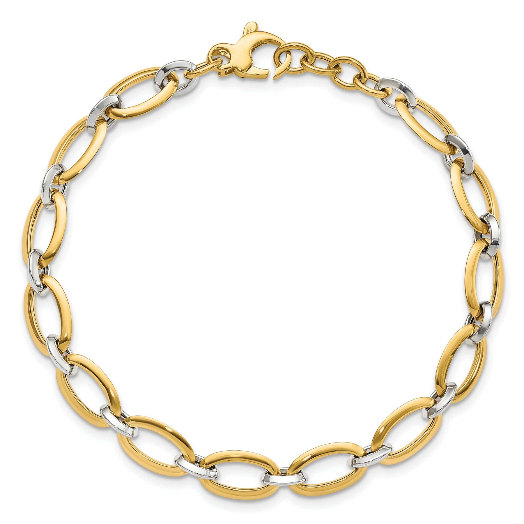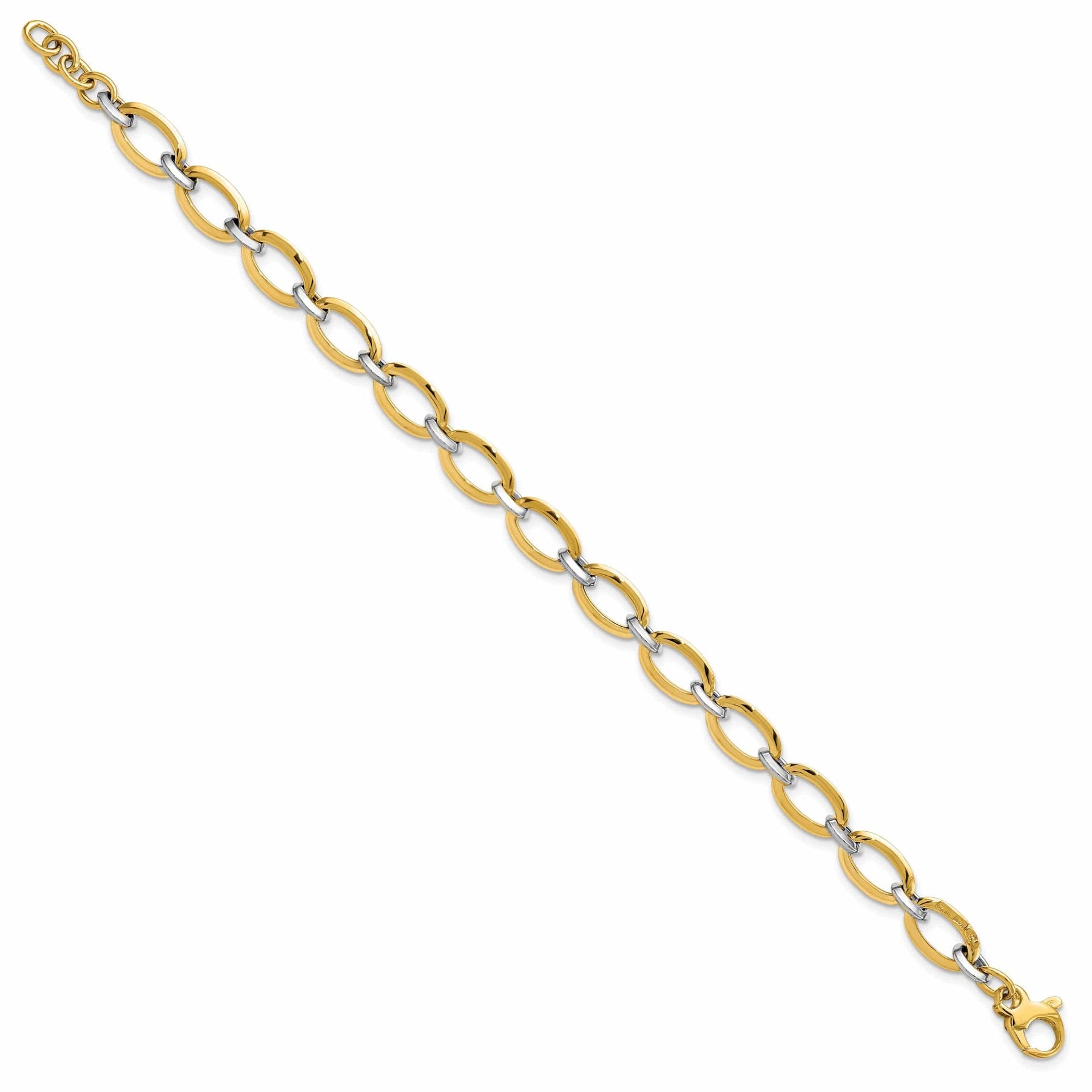 Whether you're dressing up for a special occasion or adding a touch of glamour to your everyday attire, this 14K Two Tone Gold Bracelet is the perfect choice. Elevate your style and add a touch of luxury to your wardrobe with this exquisite piece.