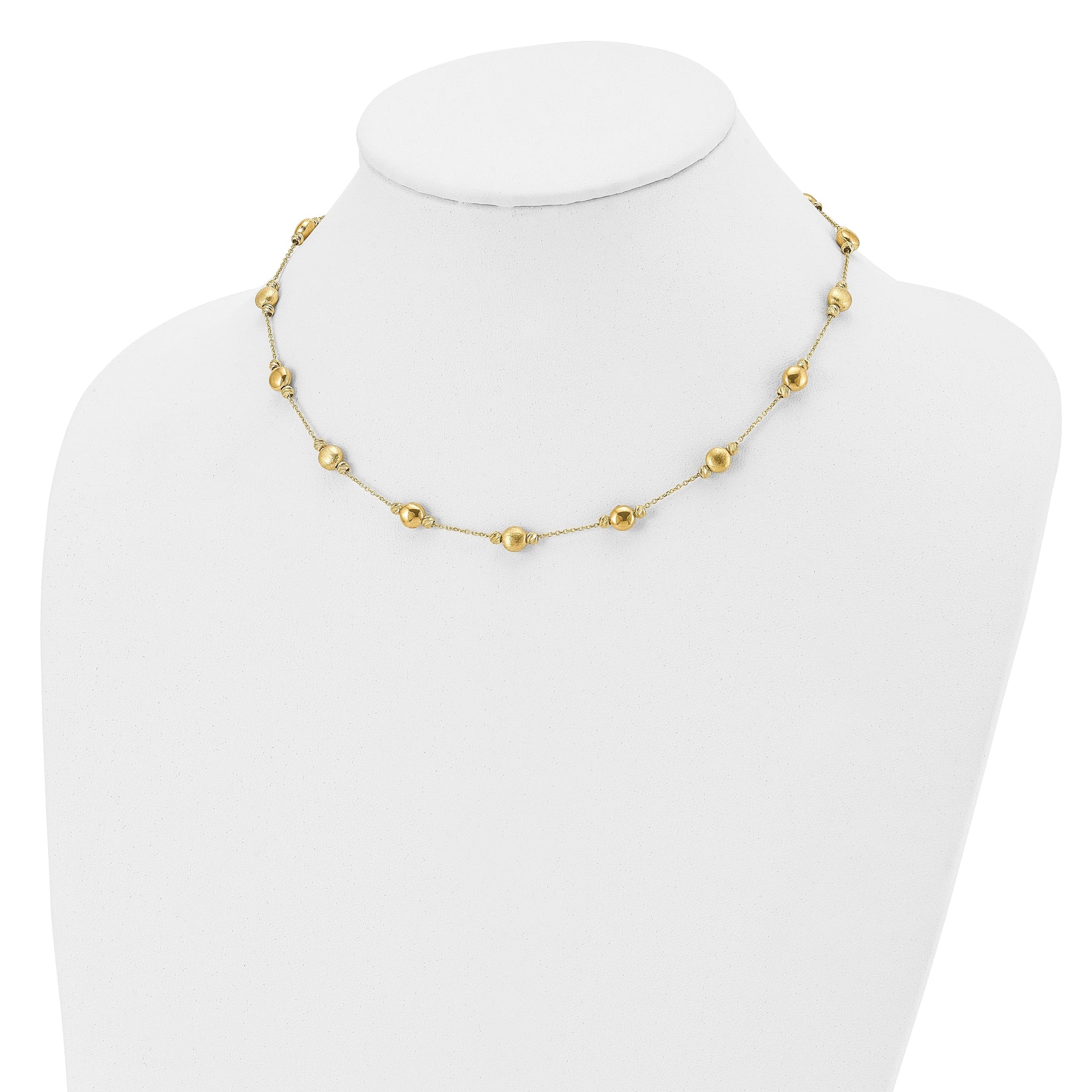 Whether you're dressing up for a special event or simply adding a touch of glamour to your everyday look, this necklace is sure to become a staple piece in your jewelry collection. Treat yourself or someone special to the beauty of Leslie's 14k Yellow Gold Diamond Cut Scratch Finish Polished Finish Necklace and elevate your style to the next level.