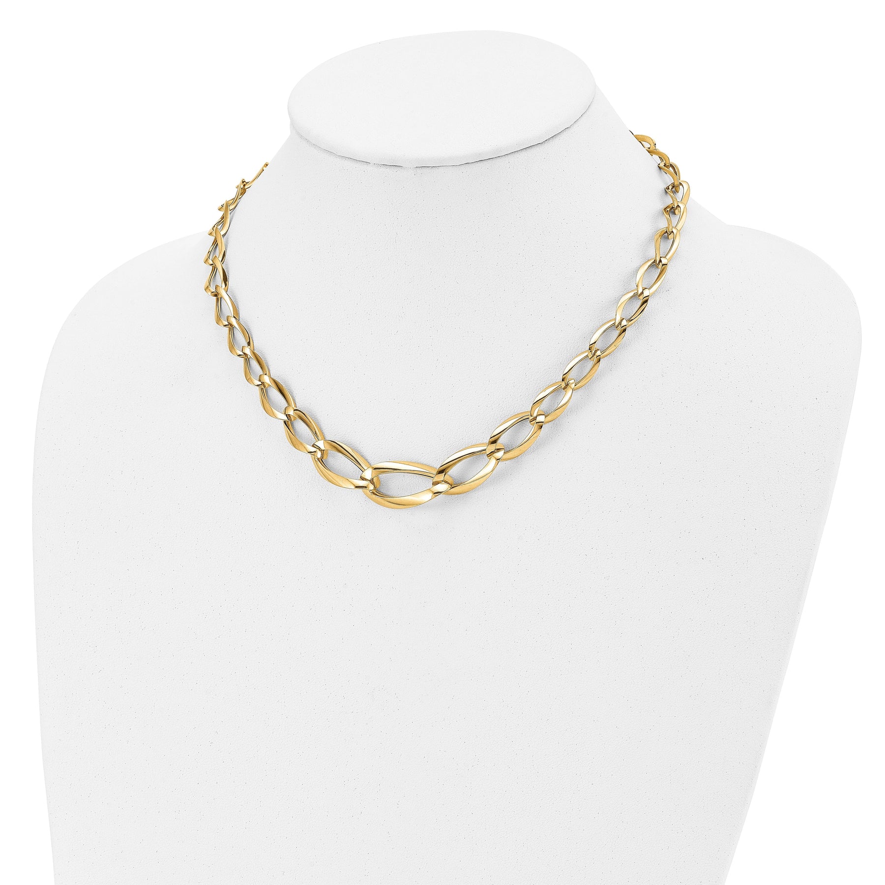 Upgrade your jewelry collection with this exquisite 14k Yellow Gold Fancy Link Necklace. Crafted with precision and elegance, this stunning piece features a polished finish that adds a touch of shine to any outfit. With an average weight of 9.87 grams, this necklace feels luxurious and substantial around your neck.