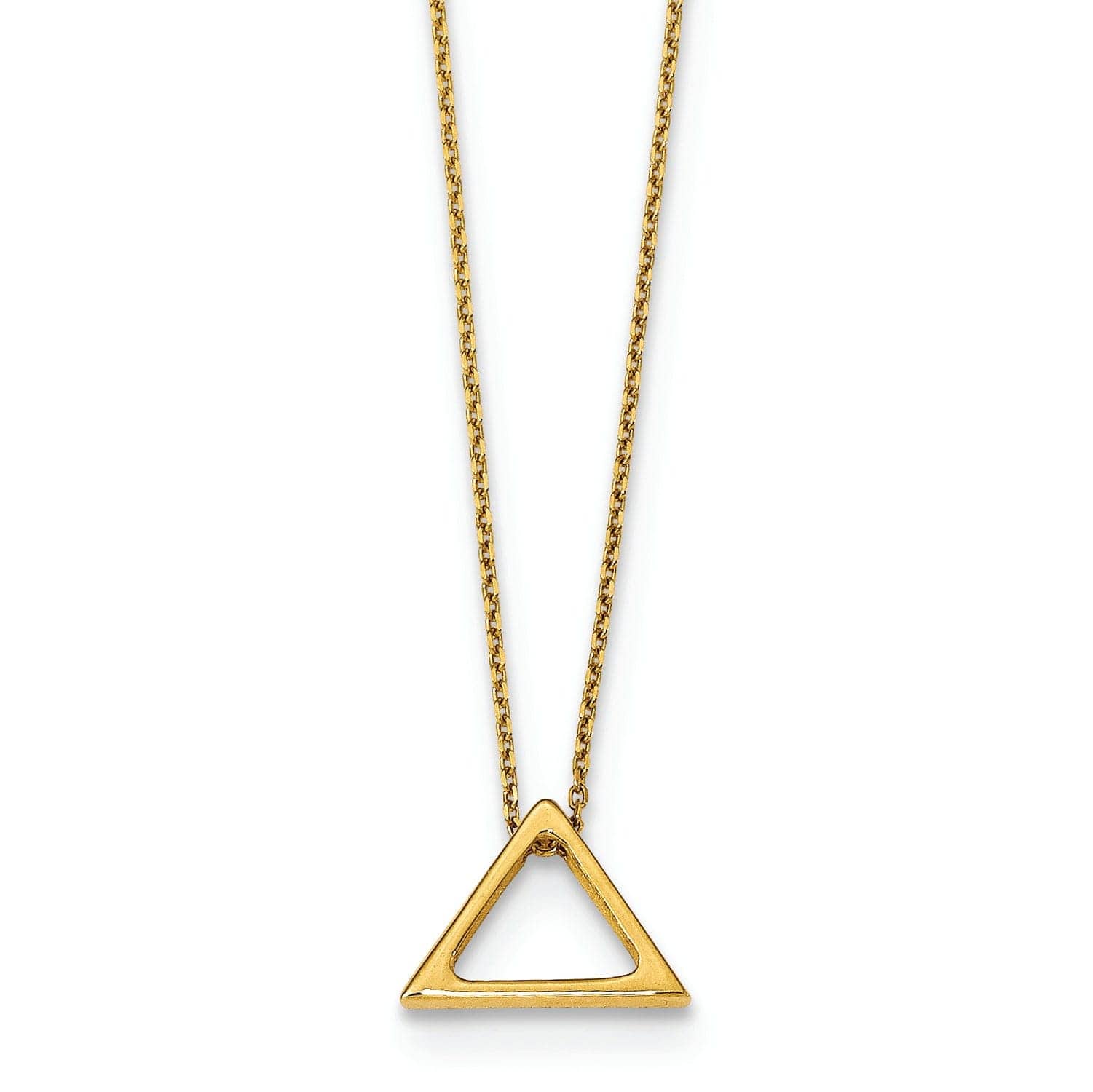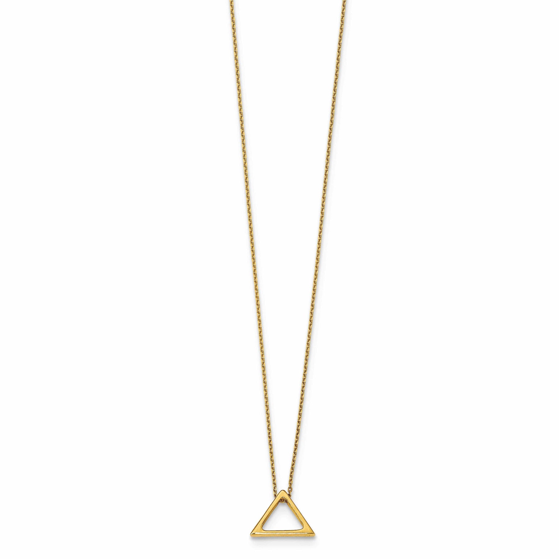Whether you're looking for a chic accessory to elevate your everyday look or a special piece to wear for a special occasion, this 14k Yellow Gold Polished Triangle Necklace is the perfect choice. Add a touch of elegance and sophistication to your jewelry collection with this beautiful necklace from Leslie's.
