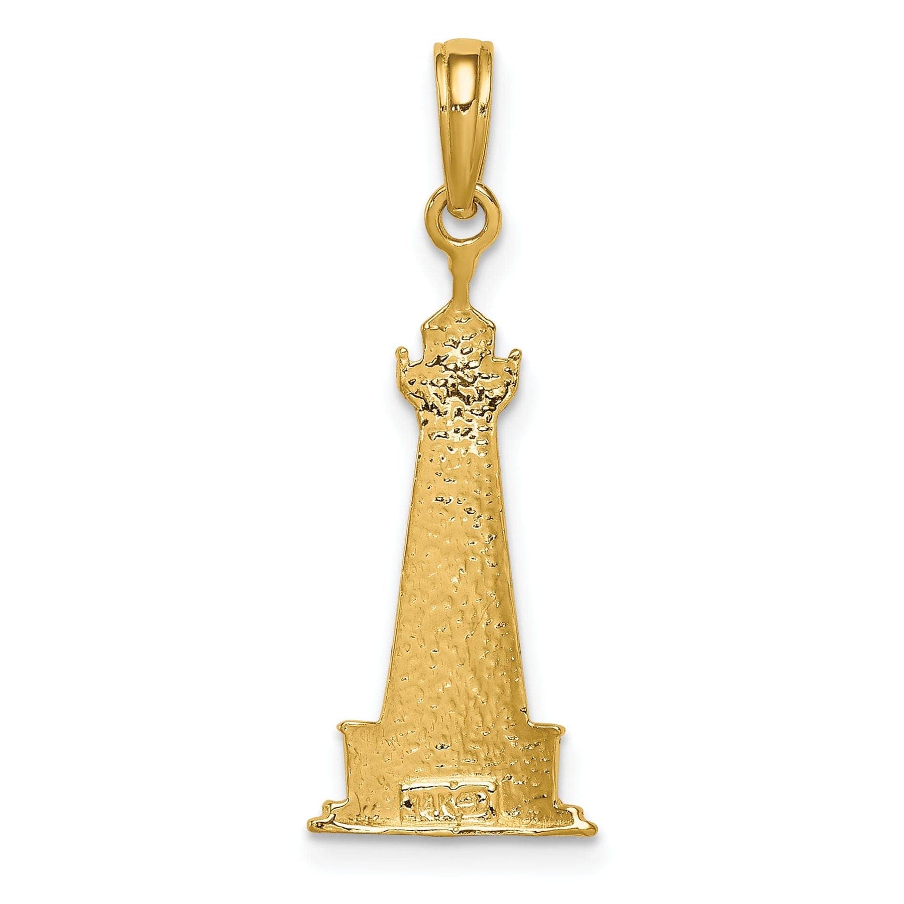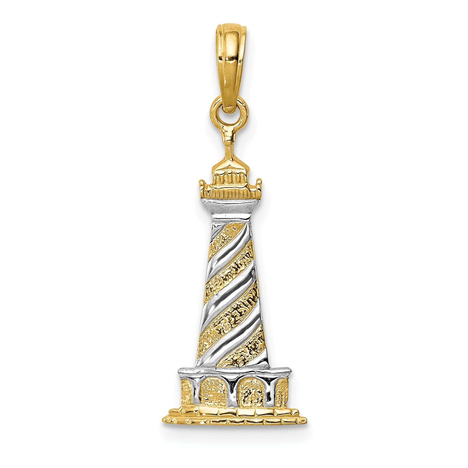 Add a touch of nautical charm to your ensemble with this 14k Two Tone Cape Hatters Lighthouse Pendant. Order yours today and let the beauty of the sea inspire you wherever you go.