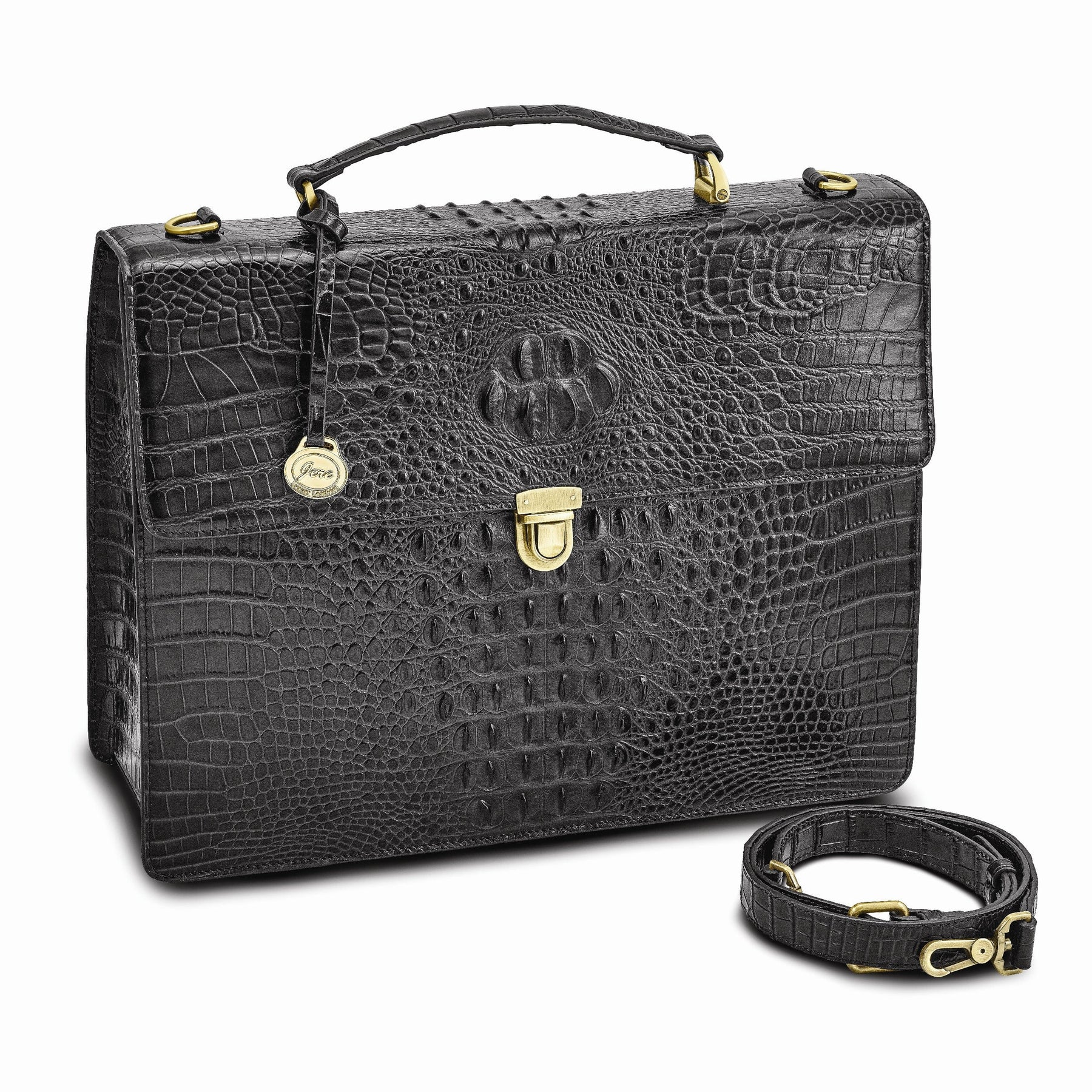 Lovely Rita's Handbags, Totes & Wallets Top Grain Leather Croc Texture Top Handle Black Briefcase Bag