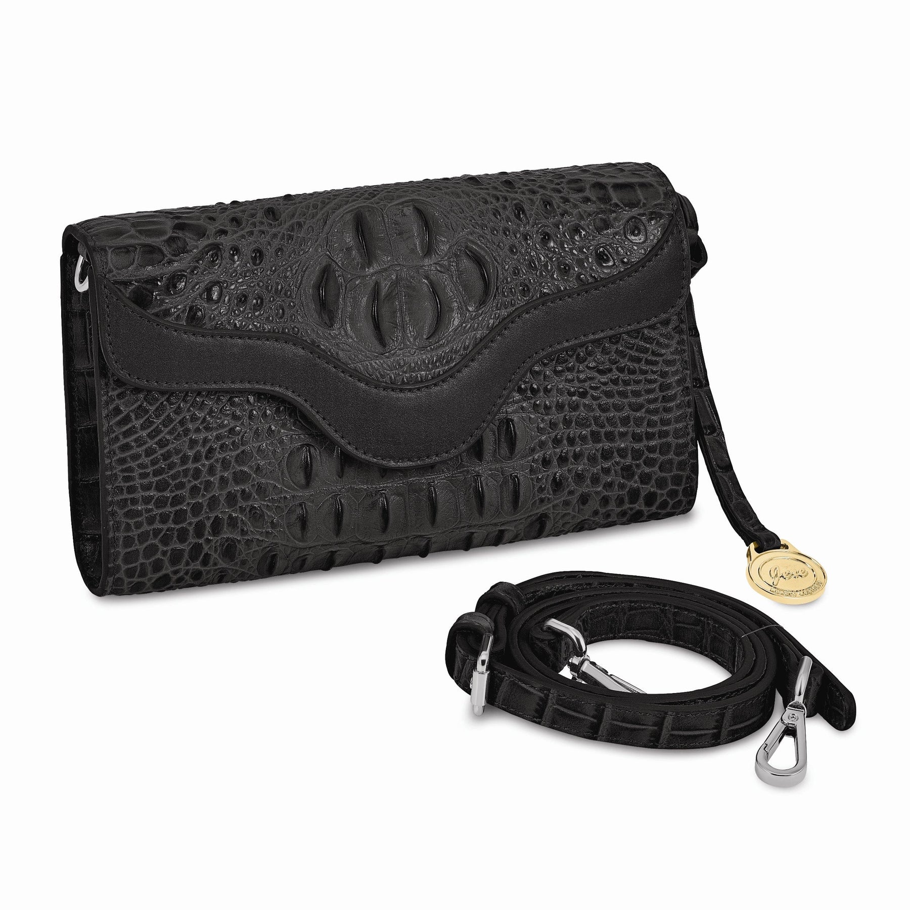 Top Grain Leather Croc Texture Black Clutch Crossbody Bag