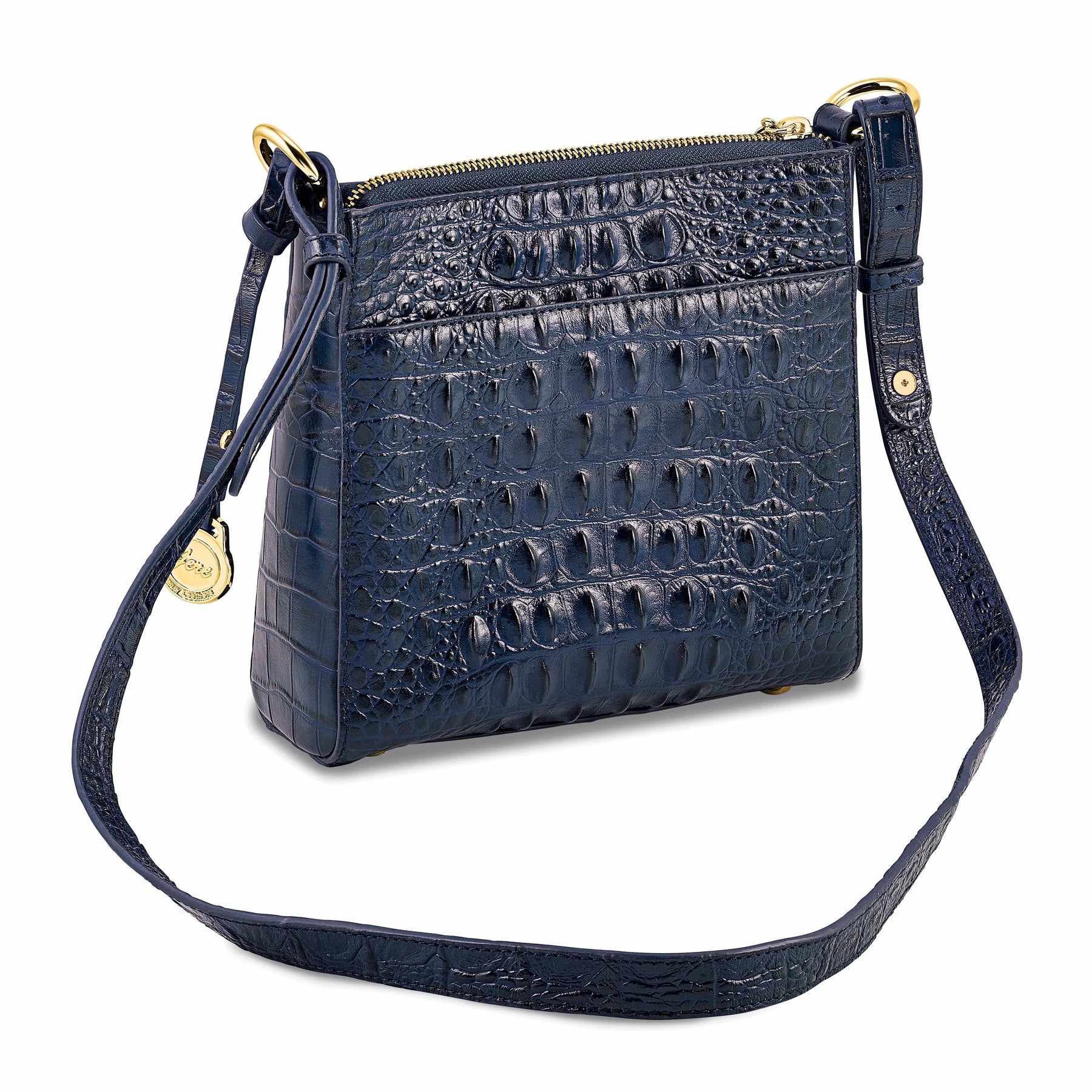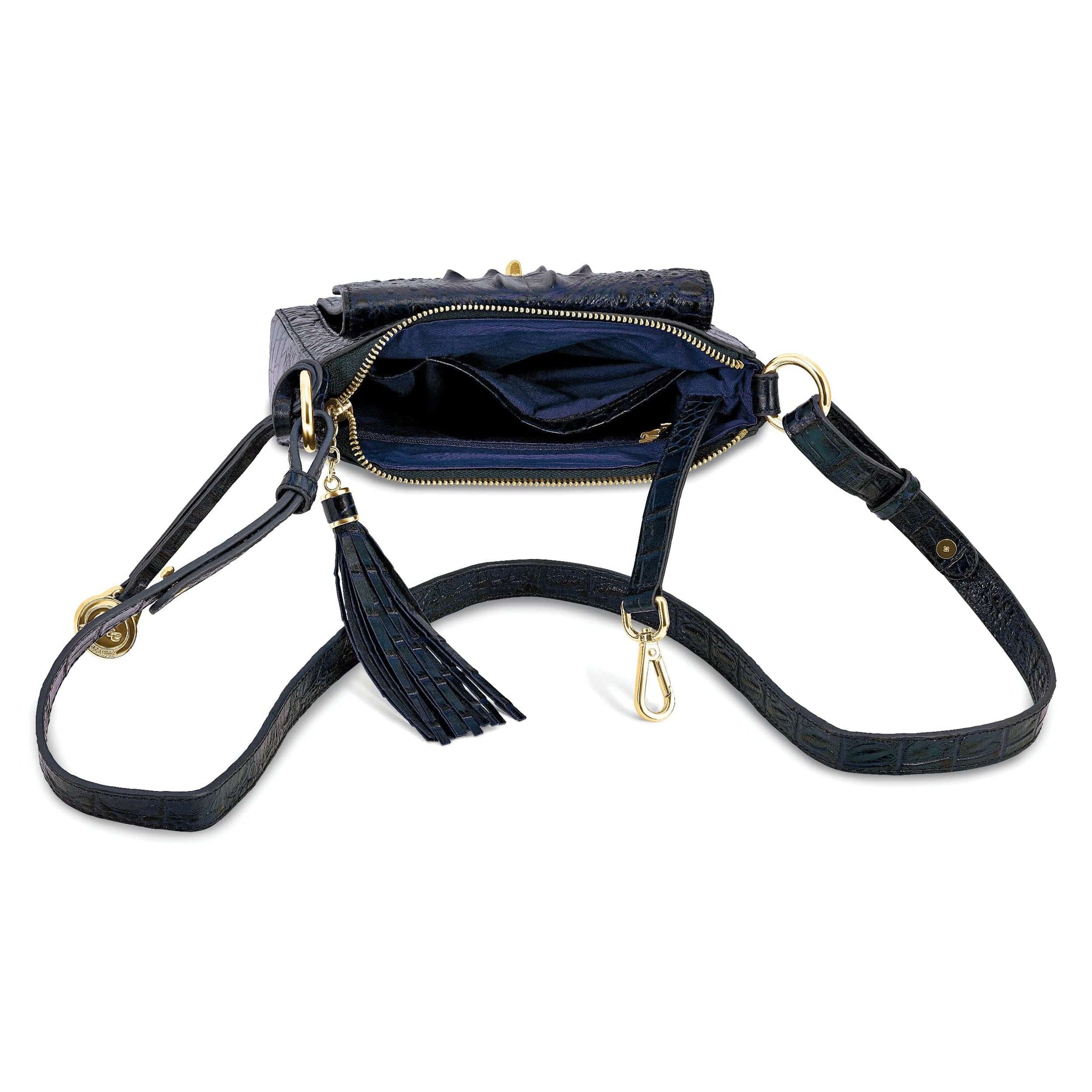 Top Grain Leather Croc Texture Navy Blue Organizer Crossbody Bag