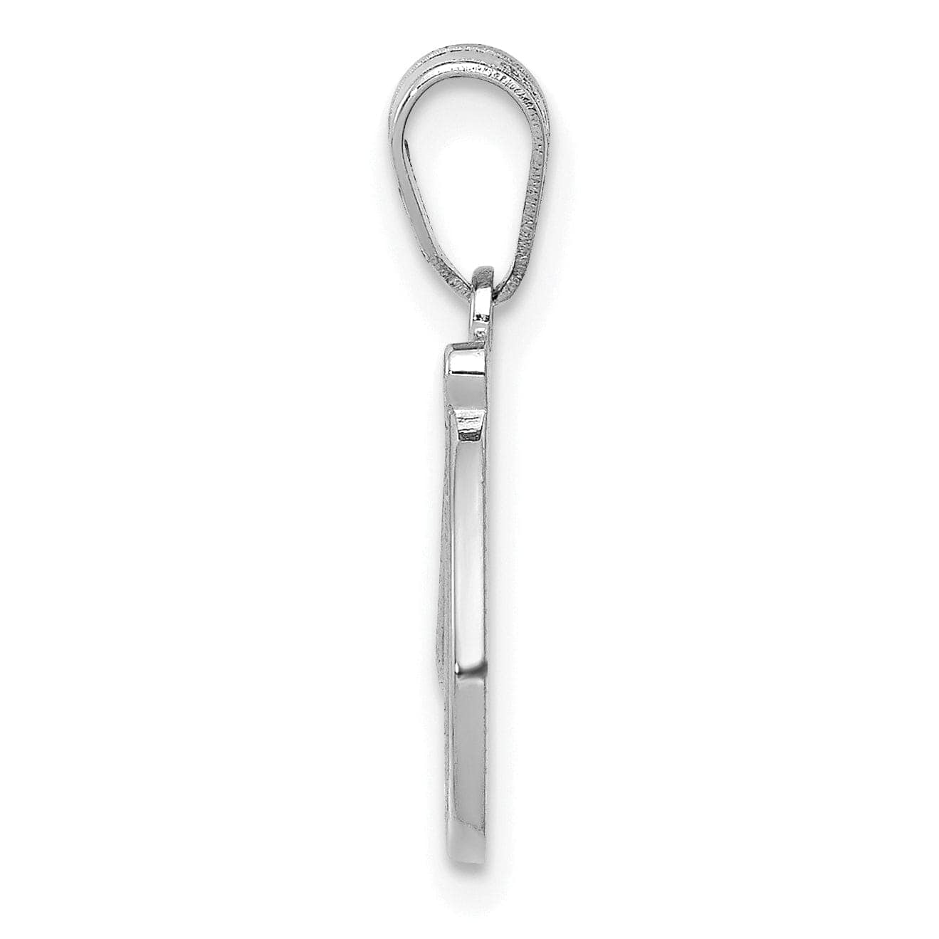 Make a statement with our 14K White Gold Rhodium Polished Finish Medium Size Script Design Letter D Initial Charm Pendant. Add it to your jewelry collection today and elevate your style with this beautiful and meaningful piece.