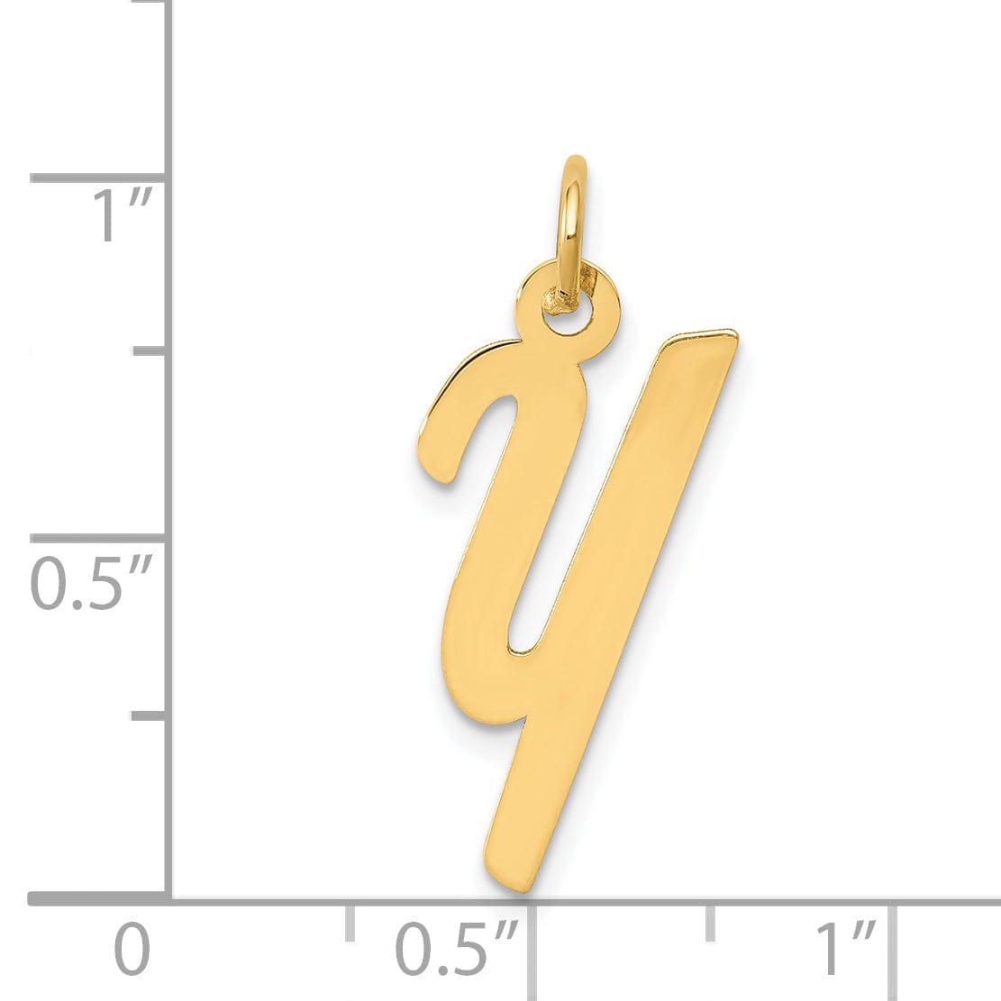 14K Yellow Gold Medium Size Fancy Script Design Letter Y Initial Pendant
